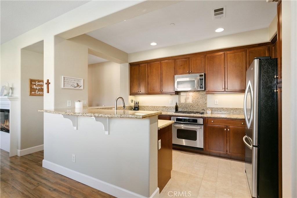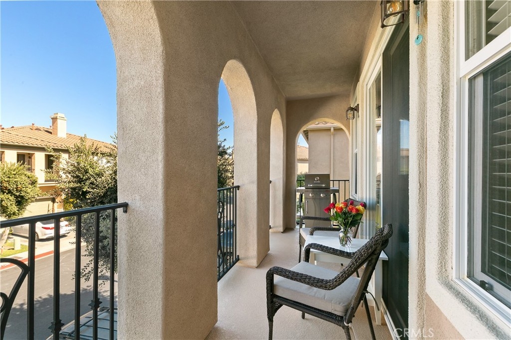 This 2 bedroom, 2 bath unit is fully updated and move-in ready. The private master suite features a lovely, modern barn door and additional access to the balcony. The master bath has a large walk-in shower and double sinks. There is a walk-in closet which is fully finished with closed and open shelving so that all your belongings stay organized and easy to access. The beautiful array of windows let in tons of natural light and having the main living space on the second level means you have privacy while all that light floods in. The second bedroom also has extensive built-ins for the closet that can be customized and adjusted to fit your needs. The second bathroom has a jetted tub. The laundry room features built-in closed upper shelving. The beautiful open kitchen boasts an under counter wine fridge, as well as matching modern appliances and stone countertops. You don't have to miss a beat while entertaining because the kitchen is open to the main living space and offers a breakfast bar in addition to your full seating in the adjacent dining room. Sip your morning coffee on a private balcony and enjoy the sound of the birds singing in the trees out front. Invite your friends and family to help you enjoy your spacious open floor plan. There is plenty of guest parking and even a full driveway space outside the perfectly tidy tandem attached garage. Come enjoy a location convenient to all major shopping, freeways, popular tourism destinations, and only minutes from the Pacific Ocean. Living in Talega means you have access to amazing amenities like hiking and biking trails, playgrounds, tennis courts, pools, spas, etc. Don't let this one pass you by.