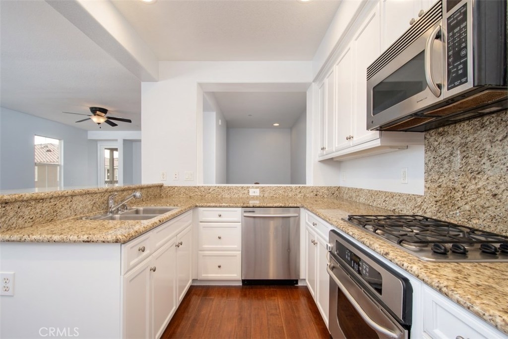 This beautiful, upgraded, light and bright two bedroom, two bath home with brand new paint and carpet, is in the desirable Verano neighborhood of Talega. The open living space is all on one level and has gorgeous hardwood floors, a cozy fireplace, access to the balcony and is open to the kitchen. The kitchen has been updated with white cabinets, beautiful natural granite and stainless steel appliances. The sizable master suite has dual sinks, a walk in closet and direct access to the balcony. The bedrooms are on opposite sides of the home for optimal privacy. The two car attached garage has direct access into the home. The community boasts a pool, clubhouse, parks, many hiking and biking trails and the world class Talega golf course. Verano is located near shops, restaurants and award winning schools with easy access to the freeway and beautiful beaches of San Clemente.
