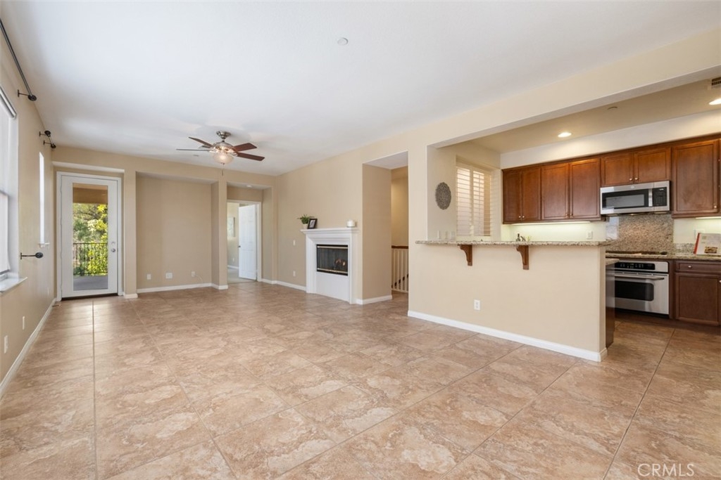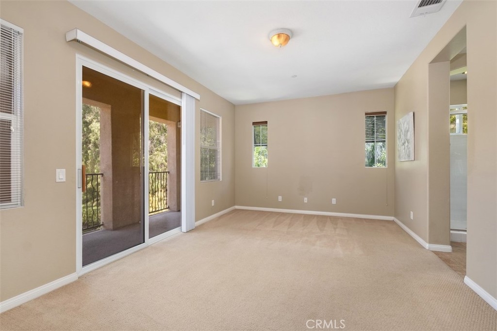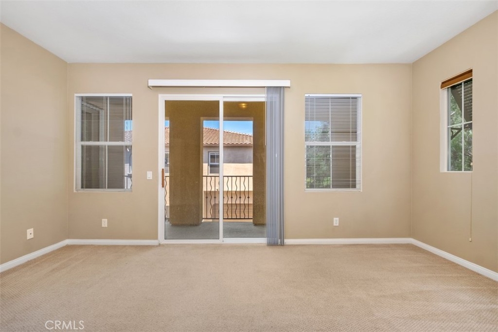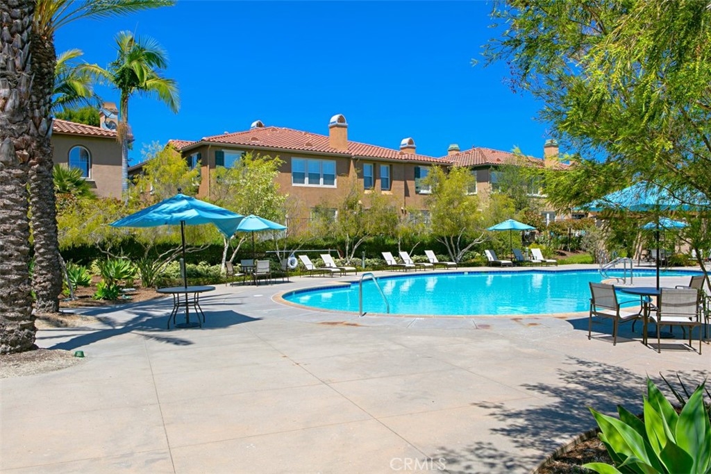 END OF THE TRACT, END OF THE CUL DE SAC LOCATION IN THE TALEGA TRACT OF VERANO. This sought-after location in the hills of San Clemente showcases a greenbelt view and a desirable carriage unit floor-plan with no neighbor above. The property has been meticulously maintained with exceptional pride of ownership. New carpeting up the stairs from the entry up the condo. An open concept kitchen with granite countertops and ample cabinets comes with a stainless steel refrigerator, plus has a new stainless steel microwave and dishwasher. The kitchen is open to large great room with ceiling fan, fireplace plus a sizable dining room area. The balcony is the perfect place to enjoy some outdoor space. There is a dedicated inside laundry room with washer and dryer included. A full bathroom room with a jetted tub is in the hallway and close to the secondary bedroom as well. The large secondary/guest bedroom has new carpet. The primary bedroom has a large walk-in closet and a dual vanity sink and walk in shower. Direct access from house to the oversized 2-car tandem garage. Additional upgrades include Italian tile flooring in all rooms except the bedrooms and custom window coverings and shutters. The Verano tract offers a community pool and spa, walking trails adjacent to the property, open grass areas and convenient distance to local award winning, Vista Del Mar Elementary/Middle Schools nearby. The well-planned Talega community offers its residents resort-style amenities including two lap pools (heated year-round), two recreation pools (seasonal), 19 miles of hiking trails, programs, clubs, special events, a sports court, a sand volleyball court, tot lots and so much more
