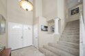 End-unit and largest model in the community! Showcasing 1,847 sqft with 3 bedrooms, 2.5 bathrooms, a 2 car direct access garage, a private backyard and a rare highly coveted full driveway. You'll notice 20ft vaulted ceilings with plenty of windows, allowing natural light throughout the property. Luxurious touches downstairs include Travertine stone flooring as well as a gas fireplace in the living room. Your chef's kitchen features granite countertops, a spacious kitchen island with storage and stainless steel designer appliances. The kitchen is open to the dining room, which has built-ins for additional storage. With an open floor plan, your home is perfect for entertaining. Dual sliding glass doors allow access to your wraparound backyard. Downstairs is also a half bathroom and a laundry closet. Upstairs, the master bedroom has vaulted ceilings, an oversized walk-in closet, a private balcony with a greenbelt view and a gas fireplace. The ensuite master bathroom has dual sinks, a separate soaking tub, a walk-in shower and an upgraded vanity. Two additional bedrooms both have vaulted ceilings and plenty of closet space. One of the bedrooms has a dual mirrored closet and the other has a huge walk-in closet. The upstairs full bathroom is upgraded with Tuscany inspired tile. HOA amenities include a pool, spa, roof coverage, the Rancho San Clemente Sports Park (beach volleyball, basketball, a playground). A new Lifetime Fitness is opening later this year. No Mello-Roos!