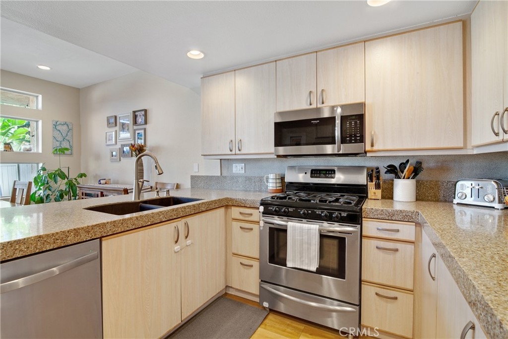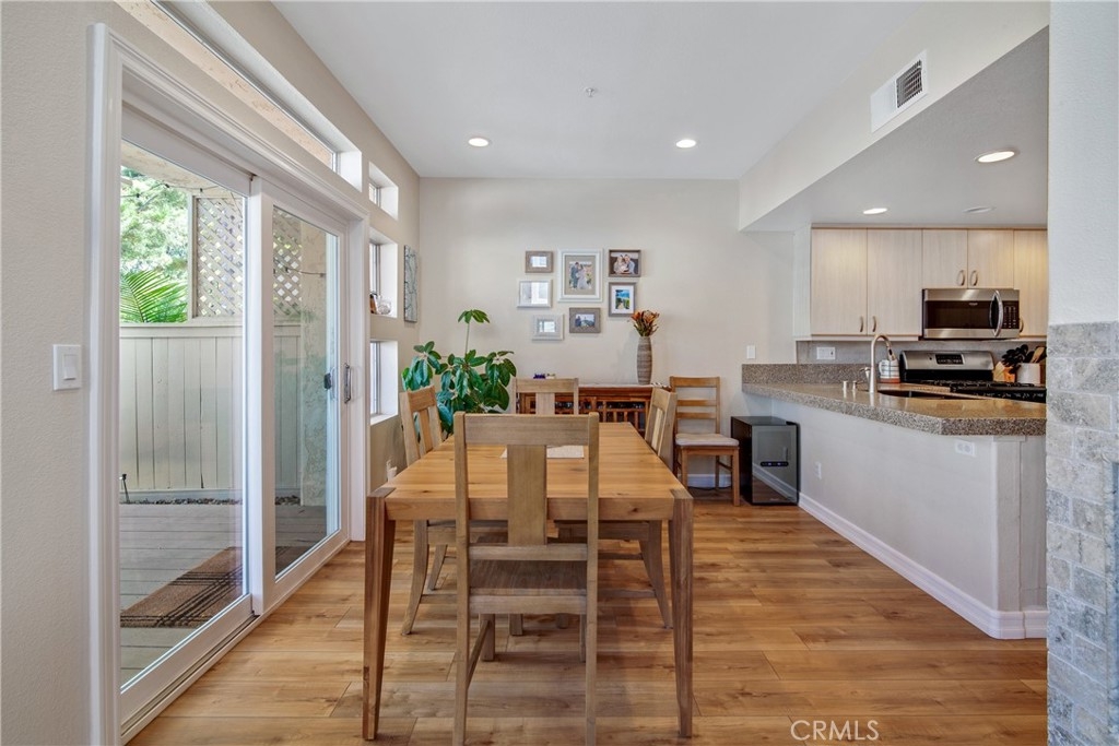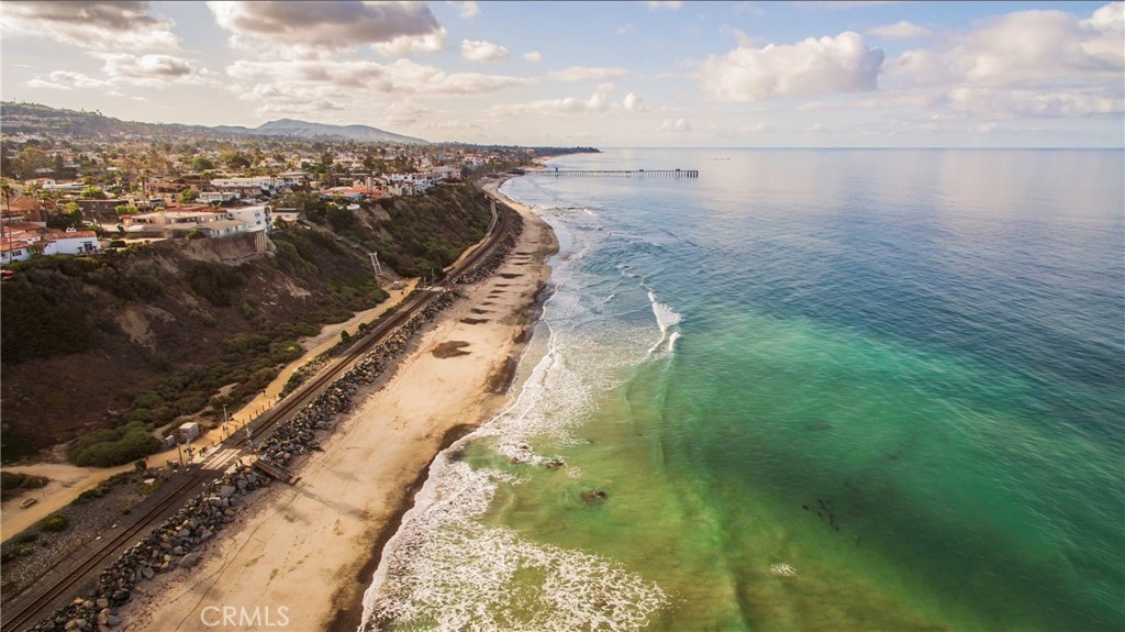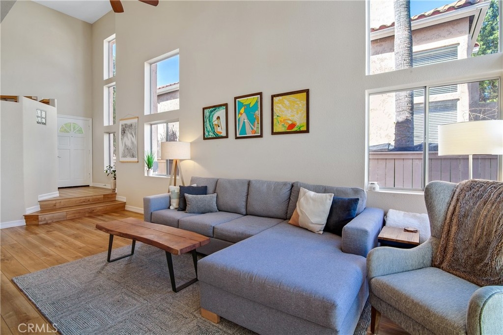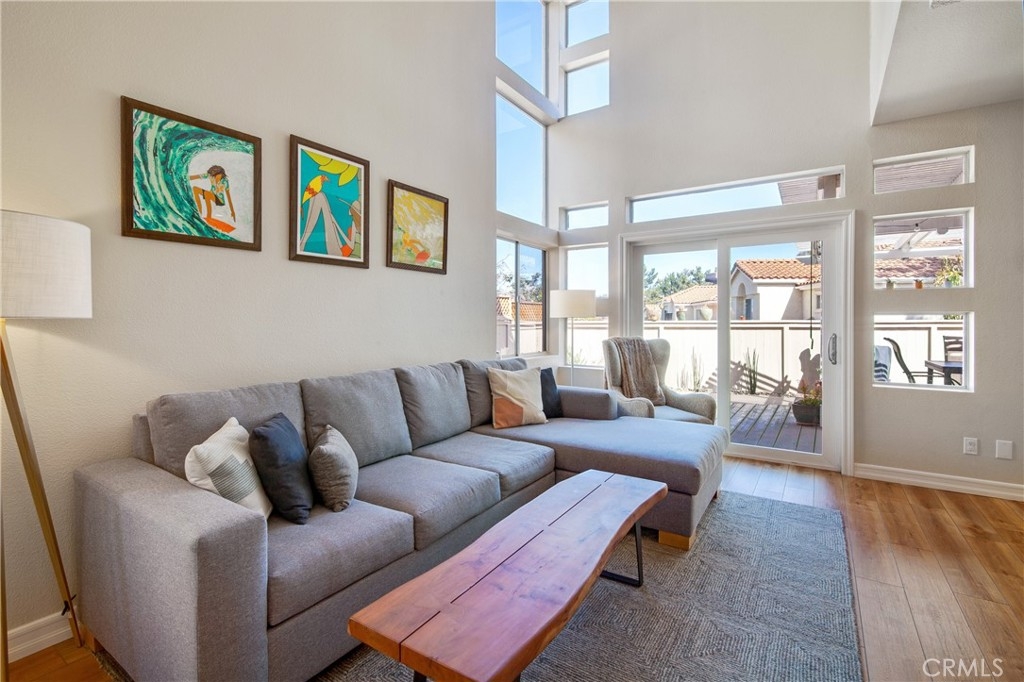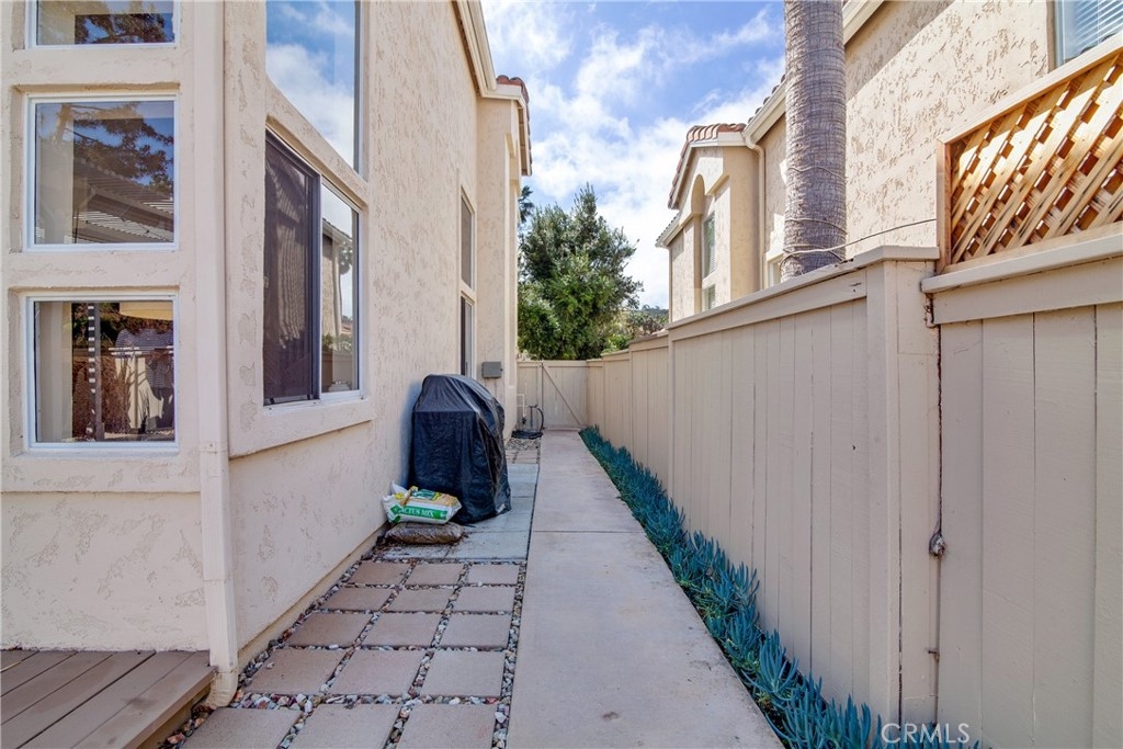 Contemporary style meets classic comfort in this sunlight home tucked away in Rancho San Clemente. As you enter, the clear story ceiling and multiple rows of windows create a private and relaxing sense of space. Luxury vinyl hardwood floors throughout the open floorplan add a modern design element. Enjoy the cozy fireplace and a custom built-ins in the living room that elevate the overall design. Sliding glass doors in both the living room and dining room encourage the ultimate in SoCal indoor/outdoor living. Open concept kitchen and dining room features stainless appliances, granite counters and tons of storage. The upstairs master bedroom is the perfect relaxing retreat. Enjoy hills and greenspace views from the quaint patio off the master bedroom with your morning coffee. Dual sinks, a soaking tub and walk in shower complete the space. Two additional secondary bedrooms and upstairs guest bath provide versatile space for a home office, additional bedrooms or home gym. The welcoming backyard is a fantastic place to entertain with a raised trex deck, low maintenance landscaping and spacious side yard. The privacy and views in the backyard are unique in this community. The sparkling ocean view community pool and spa are directly across the street. This home is very close to Life Time Fitness Tennis Club and Spa and just a short drive to world class surfing beaches and downtown shops and restaurants. Come live the San Clemente lifestyle today.