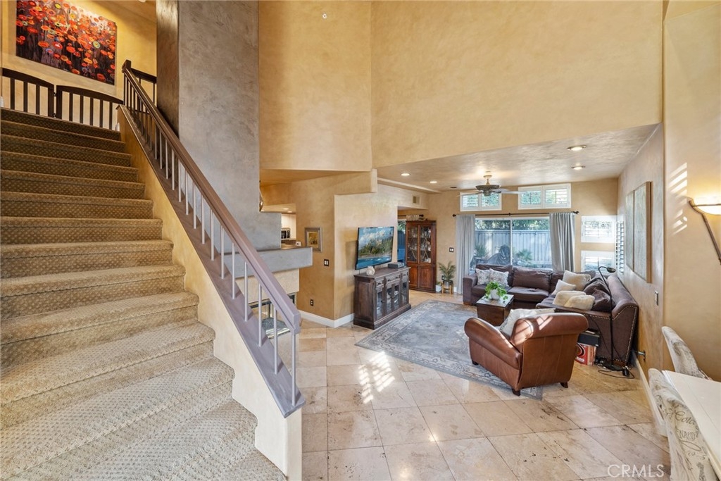 This tastefully appointed San Clemente home rests in a secluded location on an extra-large parcel in the desirable community of Vilamoura. Upon entering this corner lot townhome, one immediately recognizes an abundance of natural light thanks to the soaring ceilings and large windows. The keenly designed open floor plan includes a spacious chef's kitchen with an eat-in counter, a dining room with a built-in buffet area, and a spacious living room. The second-floor boasts a remodeled and extended master bedroom suite with balcony, fireplace, walk-in closet, and a large sitting area. Also upstairs are two more bedrooms, a full bath and lots of storage. Other upgrades include travertine flooring, Venetian plaster walls, plantation shutters, whole-house air conditioning for year-round comfort. The custom-designed garage is completely finished with recessed lighting and a rare two-car driveway. Set up in the hills of San Clemente, situated in an interior location with no street noise, this unique home is close to everything the area offers.