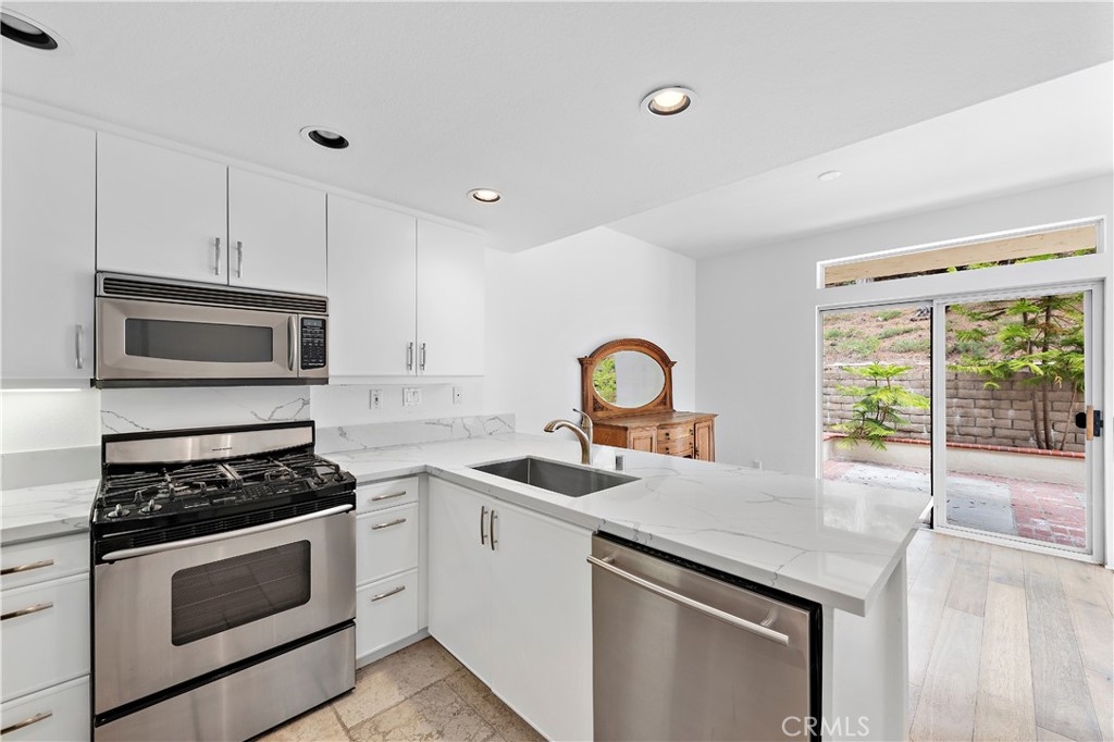 Exceptionally private end unit with beautiful upgrades! Trees and a small hillside at the back of the property help to offer so much privacy and quaint, relaxing views. Contemporary coastal living is depicted from numerous upgrades including new flooring, new interior paint and new countertops in the kitchen and bathrooms. Enter this updated 3 bedroom, 2.5 bath home to find a wealth of natural light flooding the space and blending seamlessly with the two story ceilings. Incredible, spacious floorplan! Adding to the appeal of this home, two sets of patio doors lead to the large, enclosed back patio. Very private and the perfect place to dine and entertain. The upper level is devoted to the master bedroom and two secondary bedrooms. The master bedroom is large in size showcasing a cozy fireplace and an enchanting balcony to enjoy that morning cup of coffee. Additional highlights include indoor laundry and direct access to a 2 car garage. Great location only steps to the community pool and spa with ocean views. This home is nestled in a wonderful neighborhood with hiking and biking ocean view trails and near Lobos Elementary, Rancho San Clemente Park, the new LifeTime Fitness, easy freeway access, shopping, restaurants and only minutes to the San Clemente Beaches!