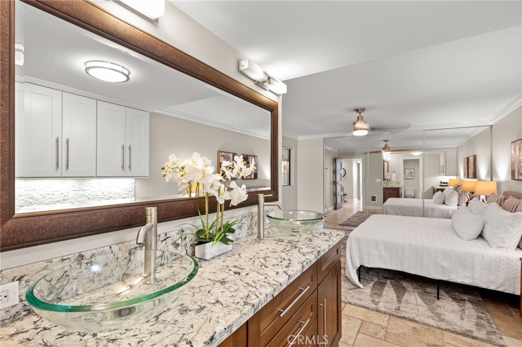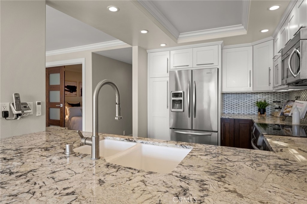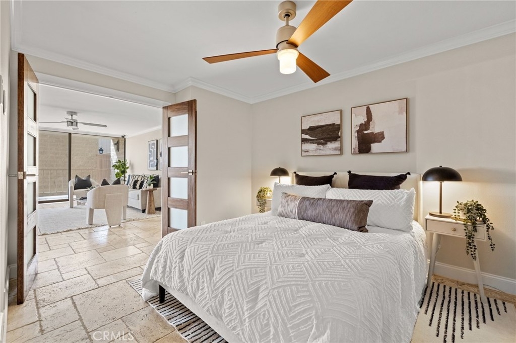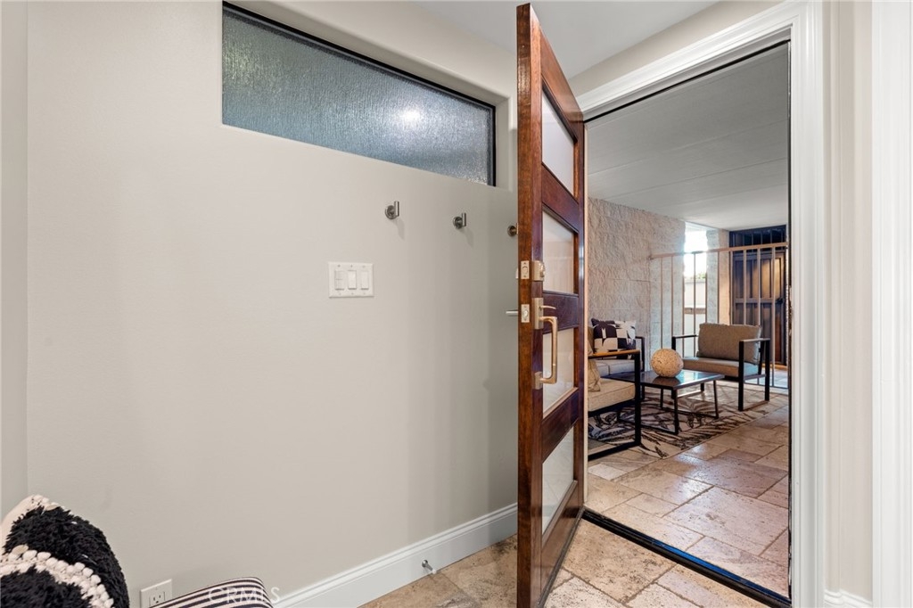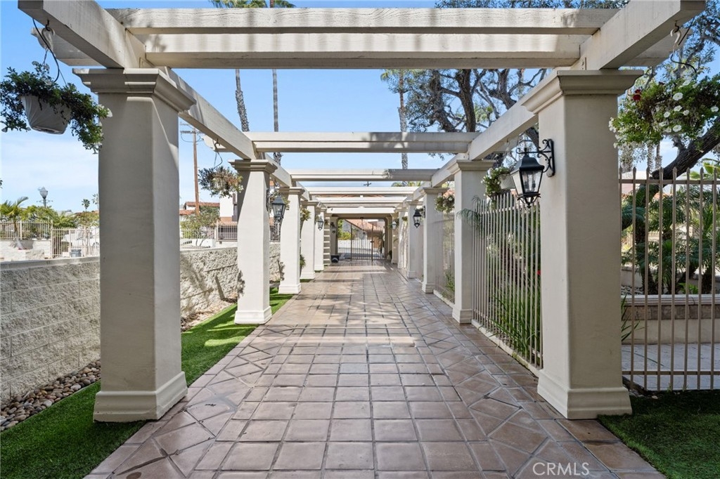 Discover your dream home or investment opportunity in the renowned San Clemente Pier Bowl. This highly upgraded, single-level first-floor unit in the sought-after Villa Granada complex offers breathtaking ocean, sunset, and pier views from the kitchen, main living area, and balcony. Experience the ultimate beach lifestyle with easy access to surf, sand, and the vibrant shops and restaurants of downtown San Clemente. Step into your private, gated courtyard, perfect for outdoor entertaining, and enter a space that exudes sophistication and modern charm. The interior boasts stone flooring, warm wood accents with contrasting white cabinetry, complemented by neutral walls and stunning crown molding. The open floor plan creates a welcoming and sophisticated atmosphere, with a spacious kitchen featuring granite countertops, updated cabinetry, custom tile backsplash, and newer appliances. Both bedrooms are designed for comfort, with the primary bedroom offering an ensuite bath and an oversized walk-in shower. The guest bedroom is conveniently located off the main living area, and a full-sized renovated guest bath is accessible from the hallway, where you'll also find an in-unit washer and dryer. Other meaningful upgrades include new front and interior hardwood doors, automated living room blinds and a surround sound system. Enjoy the ocean breeze and water views from your private balcony, an ideal spot for relaxation and multiple seating arrangements. This unit includes a secure, gated subterranean garage and storage for surfboards and beach gear, along with ample guest parking, gated and non-gated. Villa Granada offers resort-style amenities, including a heated year-round pool, spa, clubhouse, barbecues, dining tables, and a fire pit for daily enjoyment or special events. The large lobby features secure mailboxes and elevator service to each floor, with convenient trash rooms on each level. Seize the opportunity to own a piece of paradise in San Clemente, where modern comfort meets coastal beauty. Contact us today to schedule a viewing!
