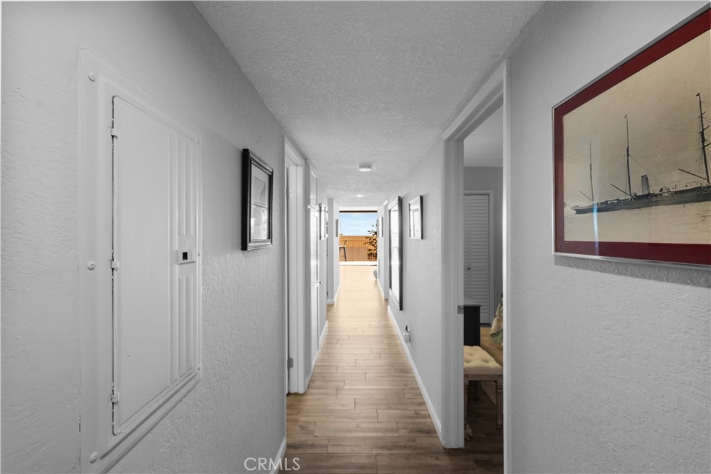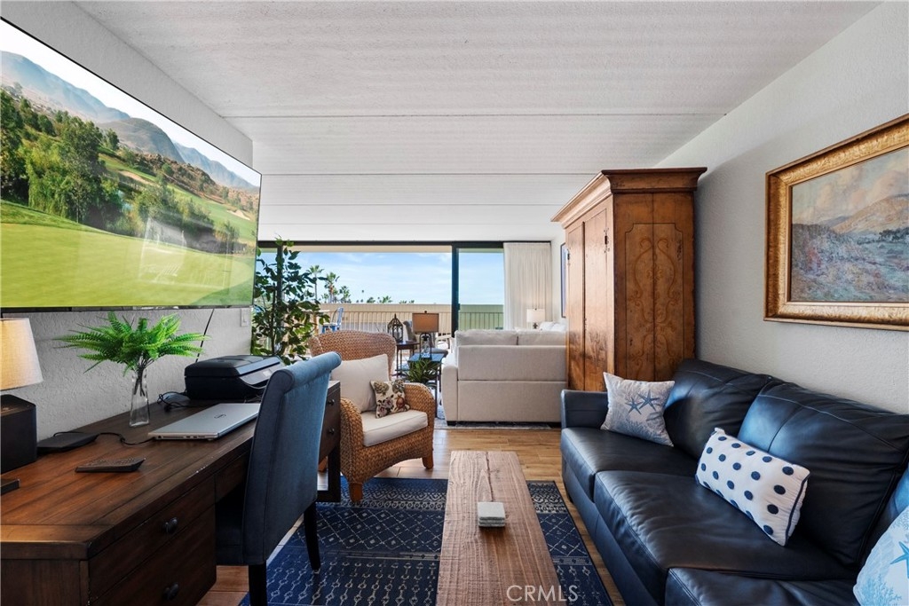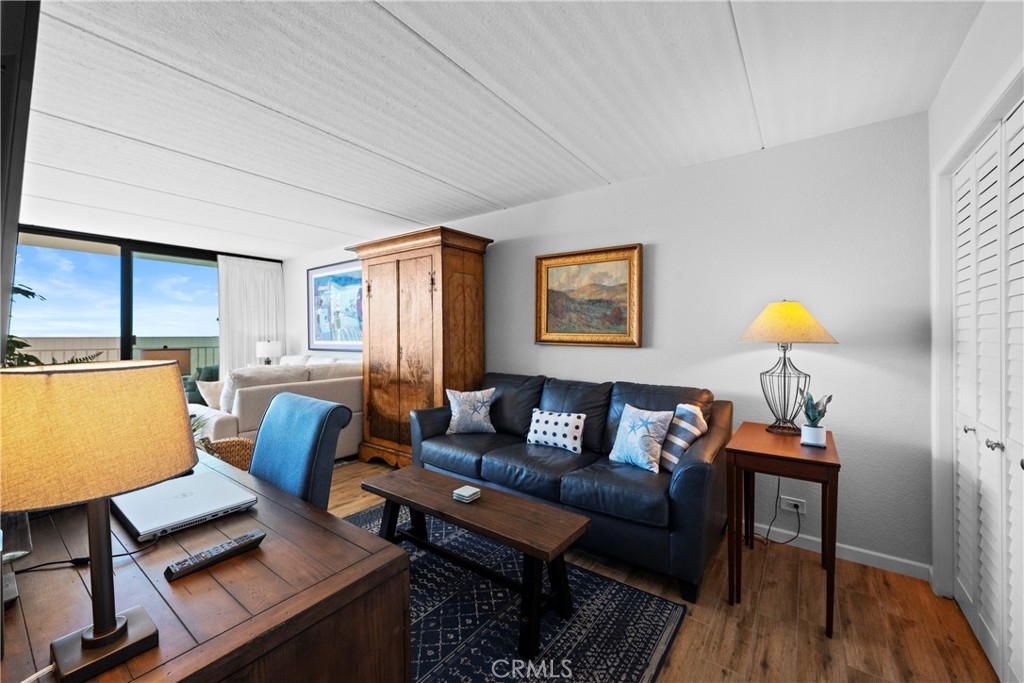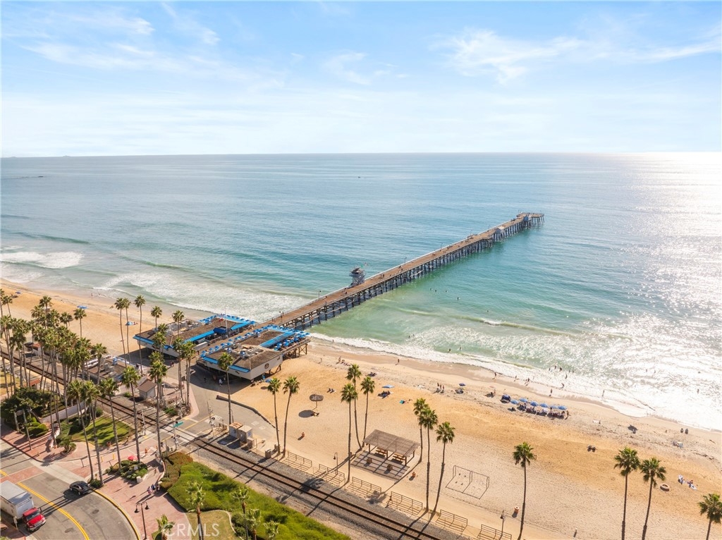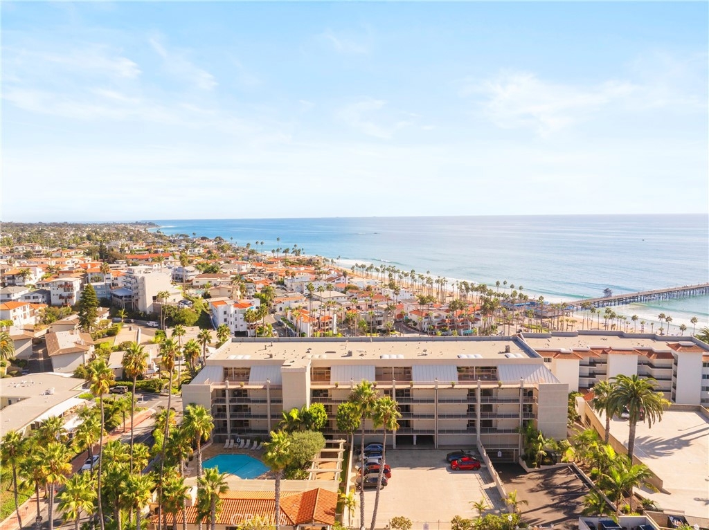 Step into this beautifully refreshed beachside condo where open design and ocean breezes define the lifestyle. The expansive layout connects the kitchen, dining, living, and office areas, all flowing to full-height sliding glass doors that span wall to wall. Natural cross-ventilation brings in fresh coastal air year-round, enhanced by one of the most temperate climates anywhere. The kitchen shines with updated countertops, crisp interior paint, and modern closet doors in a clean gray, white, and blue palette that echoes the sea just outside. A full-width deck makes dining indoors or out equally inviting, while abundant storage is found throughout—four hallway closets, a full wall of storage in the primary suite, and generous kitchen cabinetry. The primary suite includes a private en-suite bath, while the second bedroom is served by a hall bath nearby. Originally a three-bedroom floor plan, the third room has been opened to create a flexible office off the living area—its closet remains intact for extra storage or workspace. Convenience continues with an in-unit washer/dryer tucked into one of the hall closets. Two reserved garage spaces make beach trips effortless, while community amenities include a pool, clubhouse, full elevator access, and a trash room on every floor. Just steps away you’ll find world-renowned surfing, calm swimming beaches, pier-front dining, downtown attractions, and a trolley system to explore the coast. No stairs required with elevator access from parking garage to every floor in the building. Sorry but no short term rentals allowed. 30 day minimum.