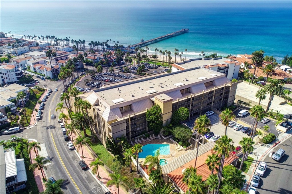 LOCATION! LOCATION! VIEWS! SIT-DOWN WHITE WATER VIEW!**Welcome to Villa Granada, where coastal luxury meets the charm of San Clemente's highly desired Pier Bowl area.**This stunning condominium offers 2 bedrooms, 2 bathrooms, and upgrades including wood floors and granite countertops in the kitchen and baths.**Step inside and be greeted by an immediate, breathtaking sit-down, white-water view of the Coastline, white water waves, the iconic San Clemente Pier, coastline, and rolling waves.**The open floorplan offers comfortable living all set against the backdrop of the sparkling Pacific Ocean.**HUGE BALCONY spans the entire front of the condo, providing a front-row seat to surfers, beachgoers, and 4th of July fireworks from the pier.**Remodeled kitchen features stainless-steel appliances, ample cabinets and counter space with amazing view!**Primary Bedroom features a wall-length mirrored closet & 2nd Closet, sliding doors to the Patio, and an Primary Bath with a dual-sink vanity and a tiled shower.**Second Bedroom comfortably accommodates a queen or two twin beds and includes its own mirrored closet, all open to ocean views.**This rare gem is located in desirable, gated, Villa Granada, with amenities including a pool, spa, clubhouse, gated parking and elevators.**Just steps from the beach and a short stroll to the cafes, restaurants, and boutiques, this condo delivers the ultimate in coastal living.**You'll love the charming "Spanish Village By the Sea" & Casa Romantica, Farmers Market, Community Park. Stroll along the Boardwalk.**Don’t miss this rare opportunity for a 2nd home, investment (30 days minimum rental), or year round living.