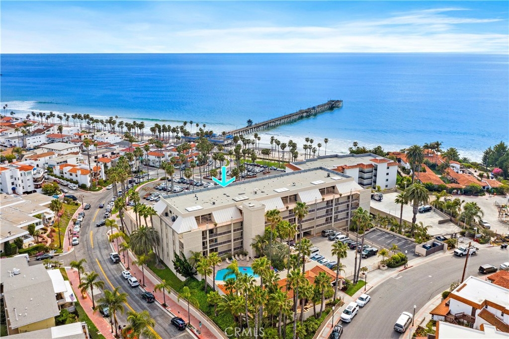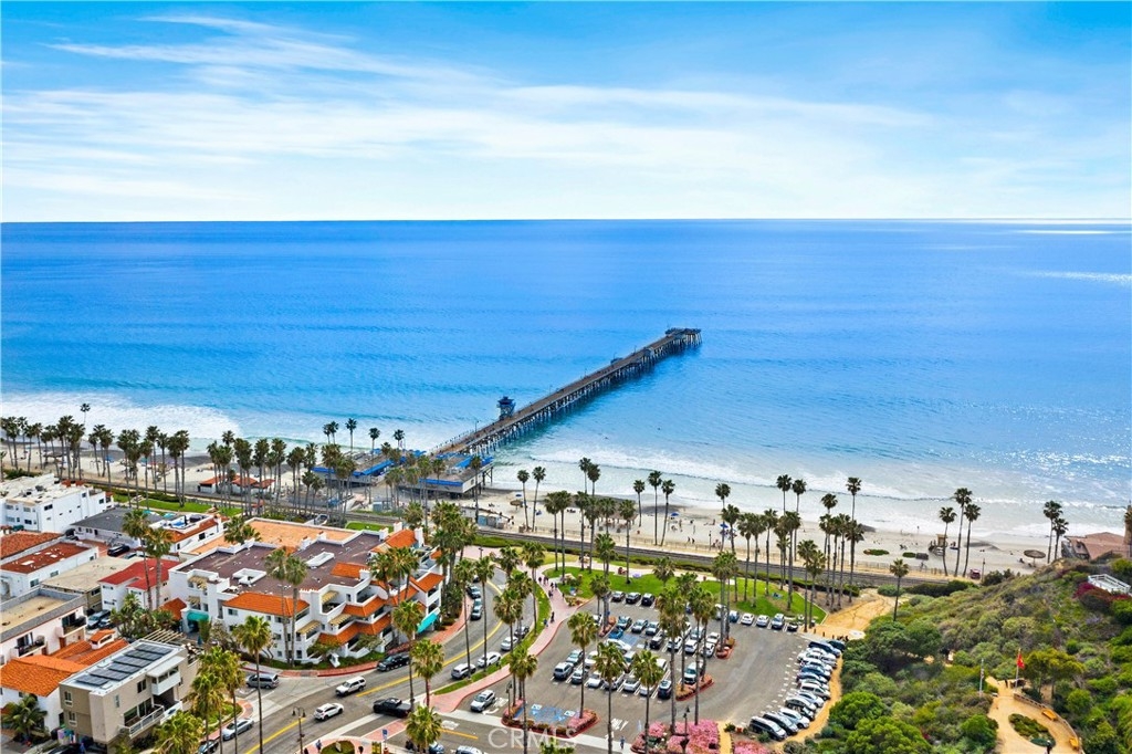 Penthouse offering an elaborate visual experience of incredible, white water ocean, the San Clemente Pier, coastline and beach views! Rarely does an opportunity present itself to acquire such a prestigious penthouse unit in this building! Highly prized Pier Bowl location and just steps to the beach, Pier, restaurants, and the San Clemente Beach Trail. The convenience of a community elevator awards single level living even from the top floor with the best views! Year-round color soaked sunsets, spectacular 4th of July displays, spirited surfers, and the melody of the sparkling waves rolling in all collaborate to create an inspiring presentation from within and from the long secluded terrace. The views here are sensational! Enter to find a great room flooded with natural light and an exquisitely updated kitchen with a custom back splash, walk-in pantry and quartz counters. A spacious master bedroom evokes comfort with a cozy fireplace and memorizing ocean views. Additional highlights include AC, indoor laundry, a murphy bed, storage space on the balcony, an additional patio near the entrance, 2 fireplaces, skylights and crown molding. Villa Granada is a gated community offering a pool, spa, clubhouse and gated parking with 2 garage assigned spaces and private, additional storage. Unmatched in beauty, this exemplary penthouse is a gem and a rare opportunity! This is the epitome of vacation-style living with magnificent ocean views and just steps to the sun, sand and surf!