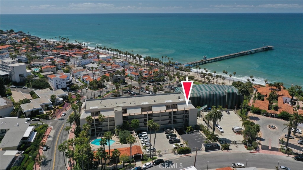 White water ocean view, upgraded Villa Granada end unit! This 3rd floor elevator served end unit condo provides the convenience of single level living with spectacular elevated views of the San Clemente coastline, pier, seal rock, waves and sand. In addition to the view, the open floor plan main living area is highlighted by a glass sliding door to your private balcony, beamed ceilings, wood paneled and mirrored accent walls, fireplace, ceiling fan, recessed lighting and high end Inhaus Sono ceramic composite flooring throughout with new base boards and door trim. The kitchen has been renovated with granite counters, custom tile and a mobile island with pop up counter. The bathrooms boast granite counters, a master shower with frameless shower doors and a rain showerhead. The bedrooms offer ocean views from every window with plantation shutters, new high grade carpet and mirrored wardrobes. Arrive home through the private gated entry with slate stone flooring. The property includes 2 elevator adjacent reserved garage parking stalls with additional storage. The gated Villa Granada complex offers a community pool, spa, clubhouse, fire pit and community roof top deck with BBQ. Located in the Pier bowl of San Clemente the property is steps to the beach, pier, beach trail, restaurants and downtown San Clemente shopping.