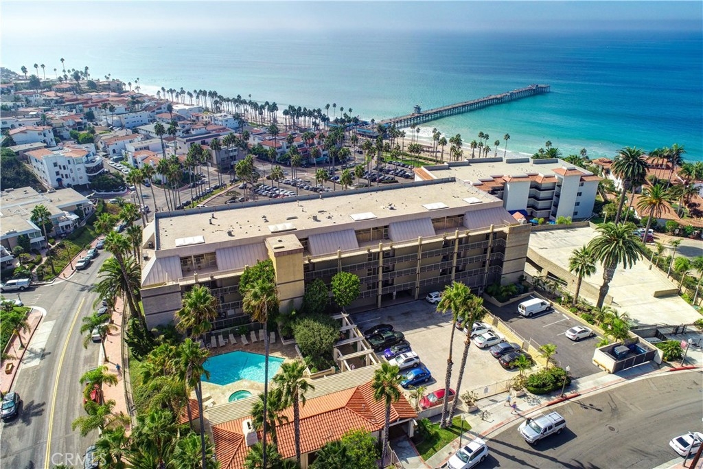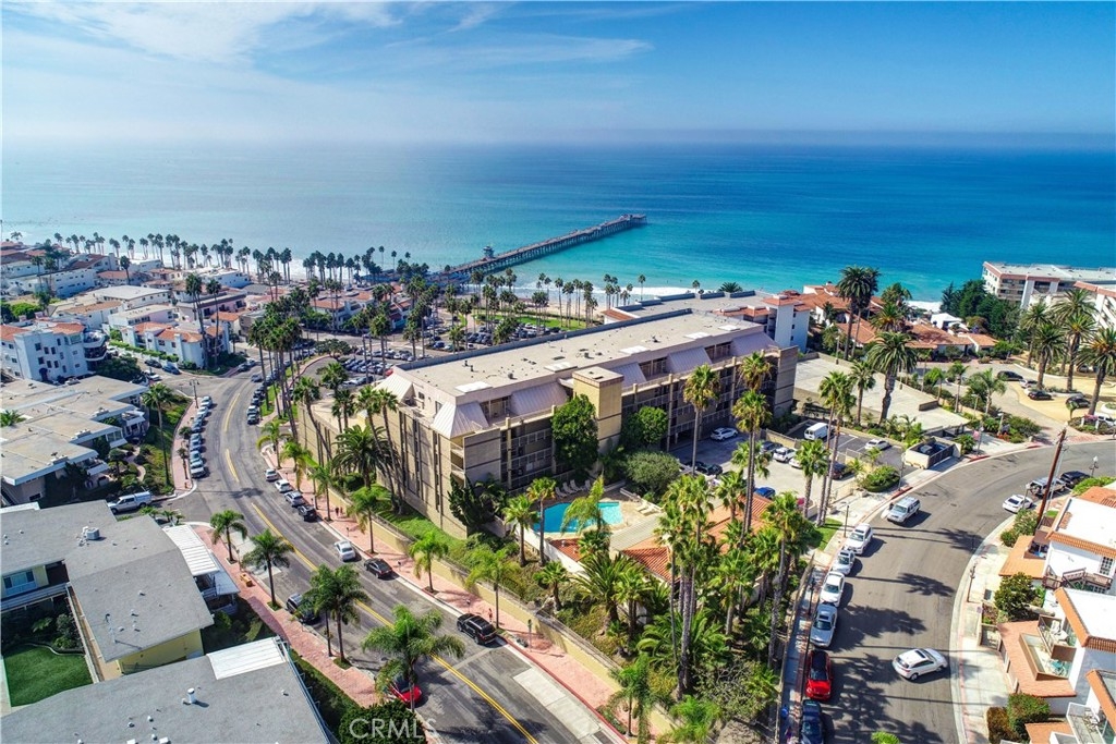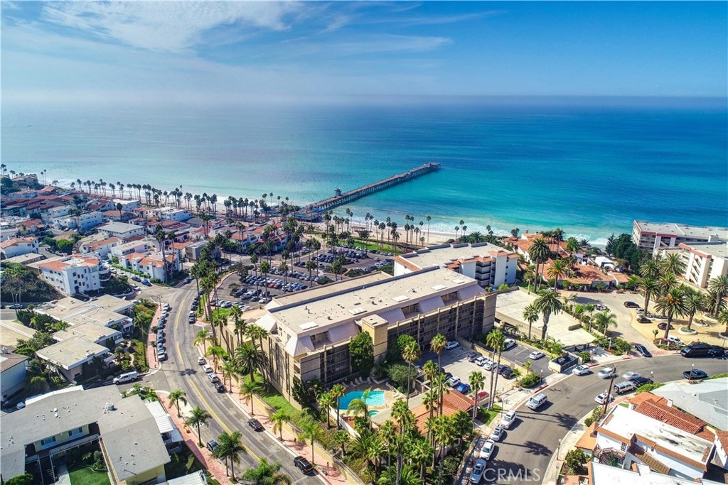 LOCATION! LOCATION! VIEWS! SIT-DOWN WHITE WATER VIEW!**Welcome to Villa Granada, where coastal luxury meets the charm of San Clemente's highly desired Pier Bowl area.**This stunning condominium offers 2 bedrooms, 2 bathrooms, and upgrades including wood floors and granite countertops in the kitchen and baths.**Step inside and be greeted by an immediate, breathtaking sit-down, white-water view of the Coastline, white water waves, the iconic San Clemente Pier, coastline, and rolling waves.**The open floorplan offers comfortable living all set against the backdrop of the sparkling Pacific Ocean.**HUGE BALCONY spans the entire front of the condo, providing a front-row seat to surfers, beachgoers, and 4th of July fireworks from the pier.**Remodeled kitchen features stainless-steel appliances, ample cabinets and counter space with amazing view!**Primary Bedroom features a wall-length mirrored closet & 2nd Closet, sliding doors to the Patio, and an Primary Bath with a dual-sink vanity and a tiled shower.**Second Bedroom comfortably accommodates a queen or two twin beds and includes its own mirrored closet, all open to ocean views.**This rare gem is located in desirable, gated, Villa Granada, with amenities including a pool, spa, clubhouse, gated parking and elevators.**Just steps from the beach and a short stroll to the cafes, restaurants, and boutiques, this condo delivers the ultimate in coastal living.**You'll love the charming "Spanish Village By the Sea" & Casa Romantica, Farmers Market, Community Park. Stroll along the Boardwalk.**Don’t miss this rare opportunity for a 2nd home, investment (30 days minimum rental), or year round living.