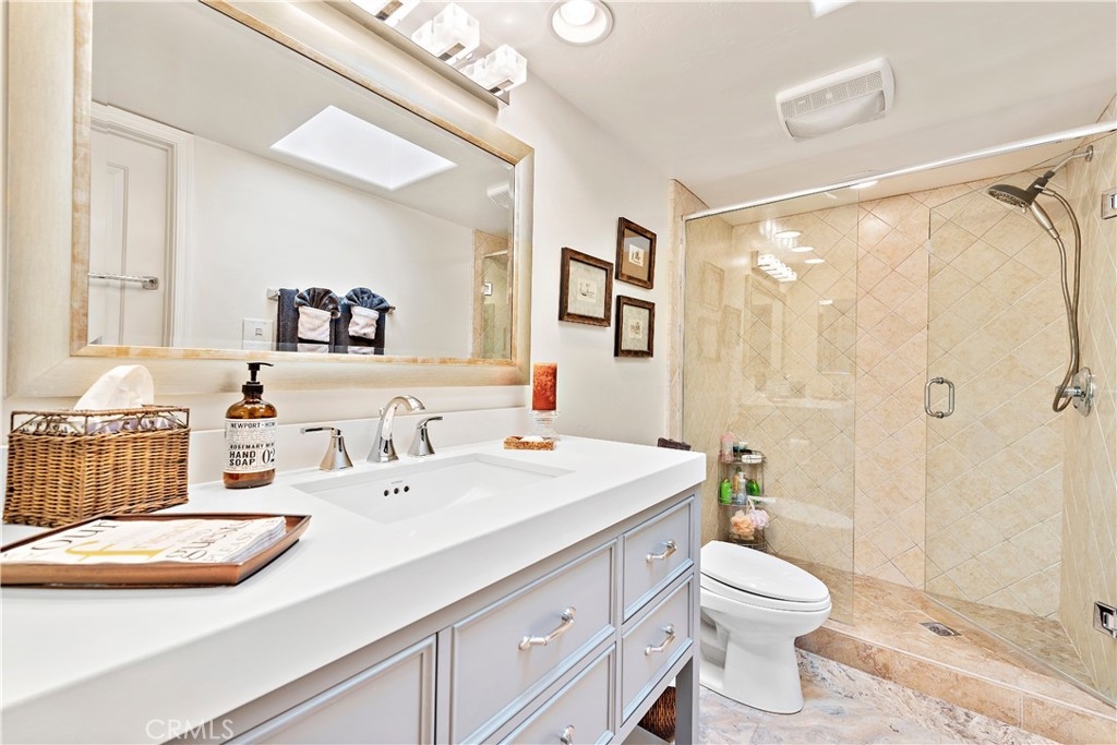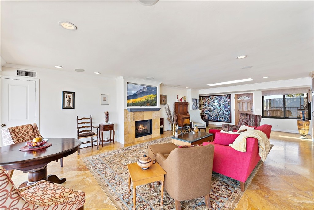 Penthouse offering an elaborate visual experience of incredible, white water ocean, the San Clemente Pier, coastline and beach views! Rarely does an opportunity present itself to acquire such a prestigious penthouse unit in this building! Highly prized Pier Bowl location and just steps to the beach, Pier, restaurants, and the San Clemente Beach Trail. The convenience of a community elevator awards single level living even from the top floor with the best views! Year-round color soaked sunsets, spectacular 4th of July displays, spirited surfers, and the melody of the sparkling waves rolling in all collaborate to create an inspiring presentation from within and from the long secluded terrace. The views here are sensational! Enter to find a great room flooded with natural light and an exquisitely updated kitchen with a custom back splash, walk-in pantry and quartz counters. A spacious master bedroom evokes comfort with a cozy fireplace and memorizing ocean views. Additional highlights include AC, indoor laundry, a murphy bed, storage space on the balcony, an additional patio near the entrance, 2 fireplaces, skylights and crown molding. Villa Granada is a gated community offering a pool, spa, clubhouse and gated parking with 2 garage assigned spaces and private, additional storage. Unmatched in beauty, this exemplary penthouse is a gem and a rare opportunity! This is the epitome of vacation-style living with magnificent ocean views and just steps to the sun, sand and surf!