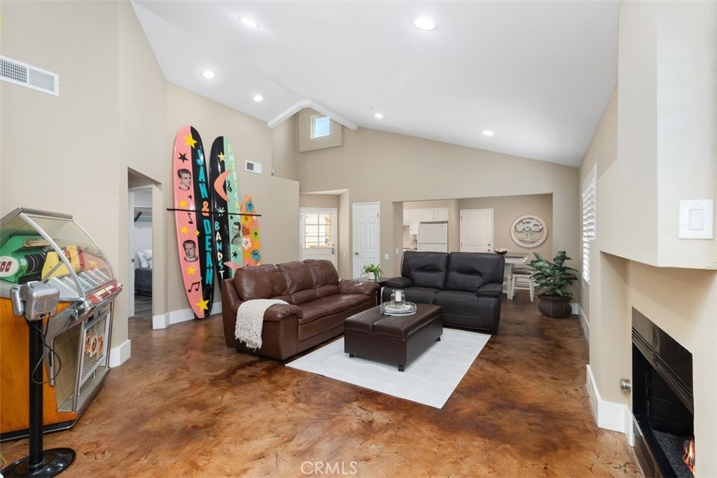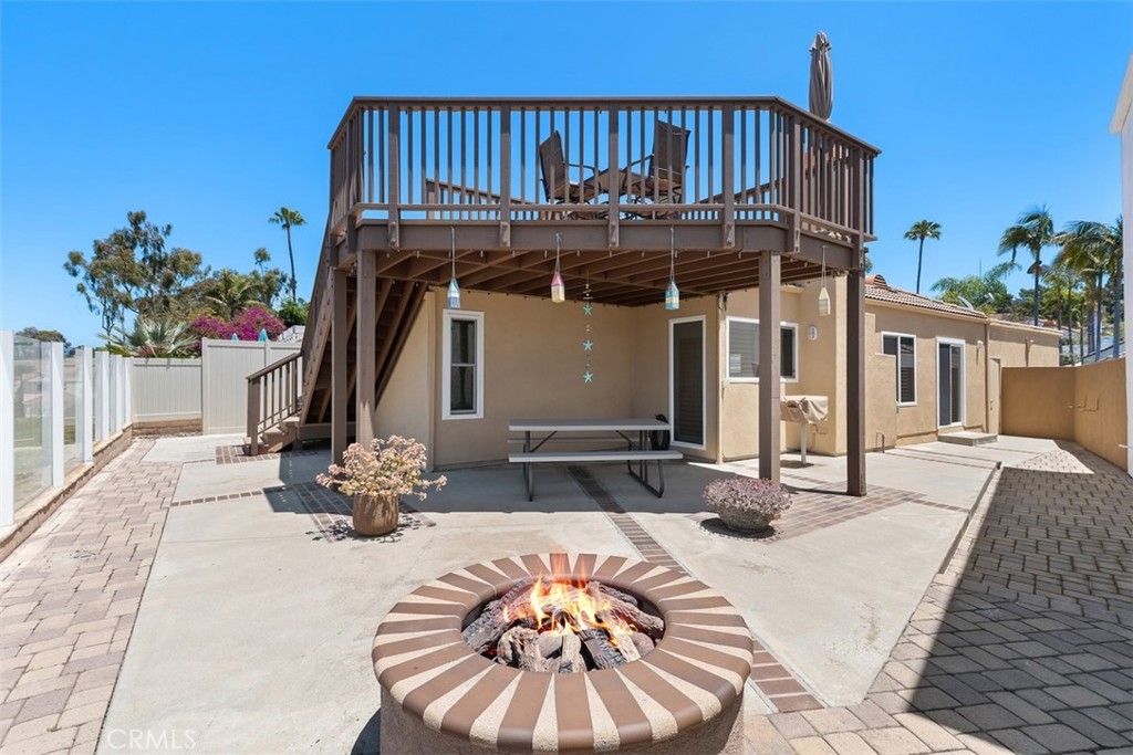 Rarely available single level with breathtaking panoramic views of the Pacific Ocean, including Catalina and San Clemente Islands, as well as the rolling hillsides that frame the horizon. Nestled in Rancho San Clemente, is this impeccably maintained home in the coveted Villagio development offering over 1,200 square feet of stylish and comfortable living space and featuring 2 spacious bedrooms and 2 beautifully remodeled bathrooms. When entering the home, you are immediately drawn to the large family room with vaulted ceilings, a cozy fireplace, and plantation shutters that enhance both privacy and charm. Nicely remodeled kitchen with white shaker style cabinetry and corian countertops! Primary suite offers charming beadboard wood paneling along with both a mirrored wardrobe storage closet and walk-in closet. Primary bath offers dual vanity areas plus a gorgeous shower with designer touches and details throughout. Spacious secondary bedroom is conveniently located and adjacent to the full guest bath. Step outside and enjoy the expansive wrap-around yard, with stylish pavers, a built-in fire-pit, and barbecue area, ideal for entertaining or relaxing under the stars. The upper rooftop deck provides an elevated vantage point to further soak in the sweeping coastal vistas, making it the ultimate retreat to enjoy sunrises, sunsets, and everything in between. Additional features throughout this fabulous home include, but are not limited to: plantation shutters, recessed lighting, durable wood plank style tile flooring, high baseboards, upgraded light switches and plugs, vinyl windows and more! Two car garage with pristine new epoxy flooring, adding both functionality and flair. This impeccably maintained home captures the true essence of Southern California living.