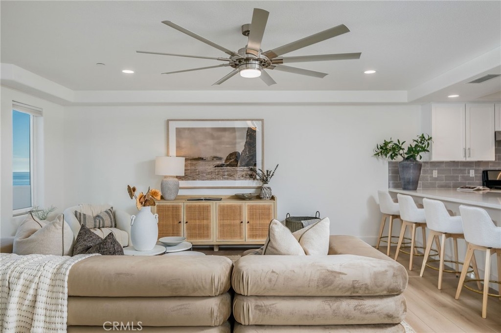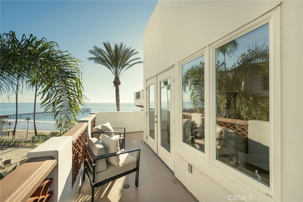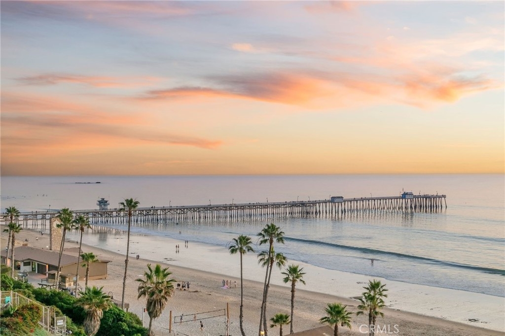 Experience refined oceanfront living in this exquisitely remodeled, single-level luxury condo located in the highly sought-after Vista Pacifica Villas, just steps from the iconic San Clemente Pier. Designed for comfort, style, and effortless coastal living, this stunning one-bedroom, two-bath residence showcases breathtaking ocean views and timeless finishes throughout. The just-completed remodel features tasteful luxury vinyl plank flooring, white shaker-style kitchen cabinetry, elegant quartz countertops, a striking tile backsplash, oversized baseboards, and modern ceiling fans. The light-filled, open-concept floor plan creates a seamless flow, enhanced by expansive windows and doors that capture the coastal sunshine and soothing ocean breezes. The serene primary suite is a private coastal retreat, offering generous space, and French doors that open to a covered ocean-view balcony, creating an indoor-outdoor connection. The suite is complemented by an en-suite bathroom, providing comfort and privacy—perfect for unwinding to the sound of the waves. Enjoy a spacious breakfast bar, a convenient interior laundry/utility room, and two expansive ocean-view balconies—perfect for watching waves roll in, white water sparkle, vibrant sunsets glow, and fireworks light up the night sky. Additional highlights include two designated parking spaces, a private electric vehicle charging station, ample guest parking, and air conditioning—a rare coastal luxury. The prestigious gated community offers secured entry, two elevators, and a solid construction built on bedrock, providing peace of mind and enduring quality. Ideally located within walking distance to the beach, pier, world-class surf, downtown boutiques, acclaimed restaurants, wine bars, farmers market, ocean festivals, and Linda Lane Park, this home delivers the ultimate Southern California lifestyle. Offering 1,117 square feet of sophisticated coastal living in what is often considered the most moderate climate in the country, this exceptional residence embodies Coastal Luxury Living at its finest.