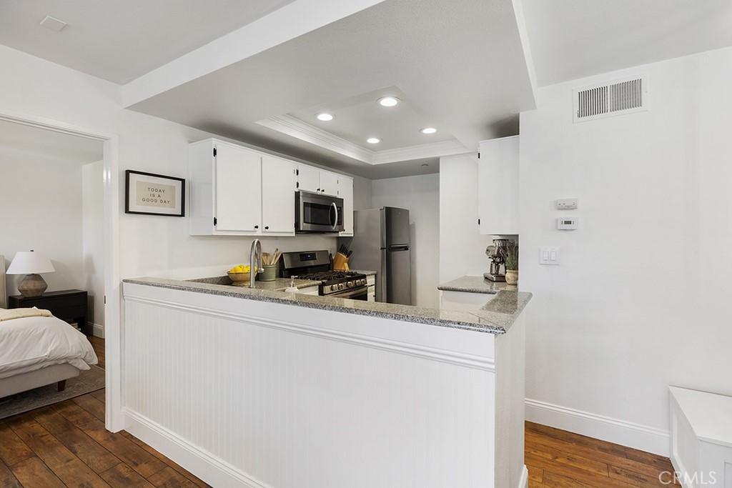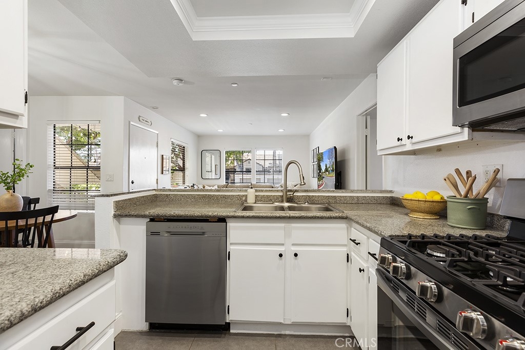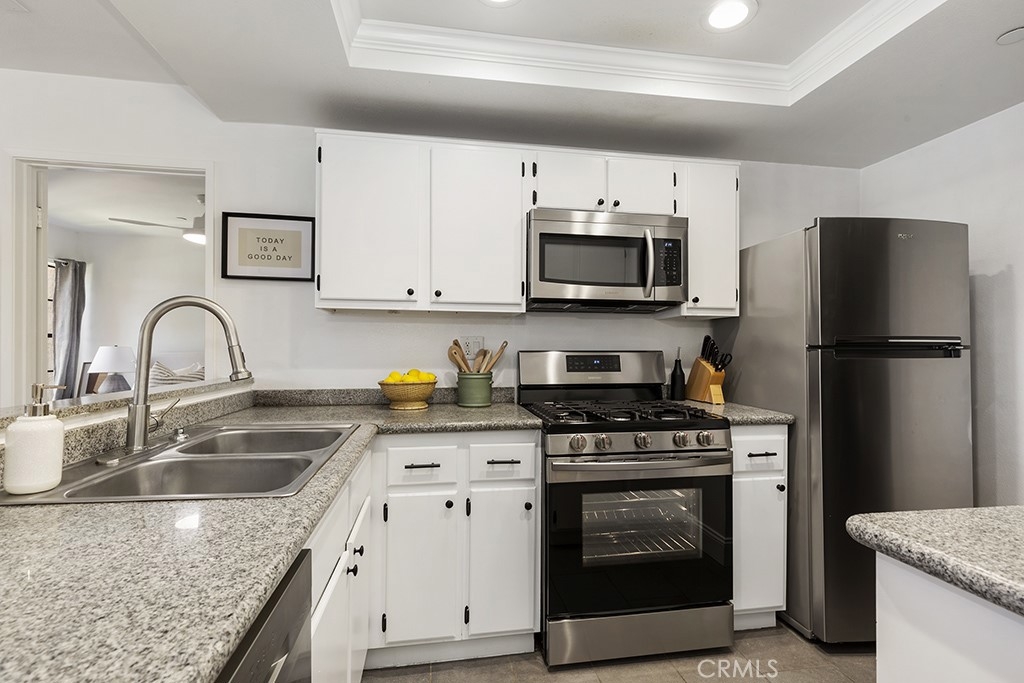 Recently updated and meticulously maintained, this charming, turn-key residence is perfectly positioned within the picturesque community of Vista Pacifica making it an exceptional offering for even the most discerning buyer. Freshly painted, the residence features an array of amenities including recessed lighting, stylish wainscoting, newer baseboards, newer water heater, and newer designer light fixtures throughout. Upon entering, the spacious living room welcomes its visitors with an abundance of natural light, newer ceiling fan, as well as hardwood flooring across the open-plan interiors. Fitted with newer stainless steel appliances, the kitchen is complete with granite countertops, recently painted white shaker cabinets with newer hardware, double compartment sink, plenty of storage space, and a newer ceiling tray. Beyond, the breakfast nook with seating is the idyllic setting for casual dining and leads out to the expansive patio space from which to enjoy the ocean breezes and warm San Clemente climate. Further along, the opulent master bedroom offers a spacious walk-in closet, with an en-suite bathroom complete with newer vanities, newer designer tile flooring, and a recently refinished bathtub. Complete with a Ring doorbell system, one-car garage, and one assigned parking space, with close proximity to famous beaches, world-class dining, shopping, entertainment, this remarkable opportunity is not to be missed! Residents of Vista Pacifica enjoy amenities including two community pools and spas, a recreation room/clubhouse, and RV storage parking available for small monthly fee.
