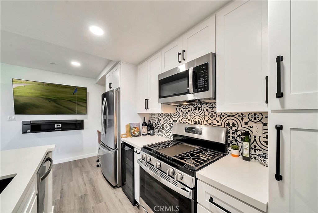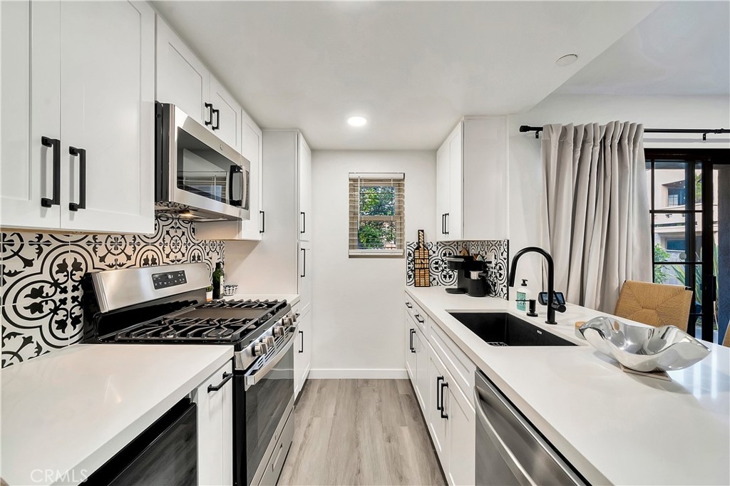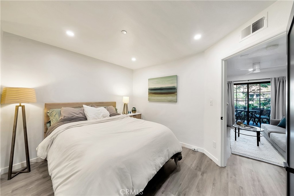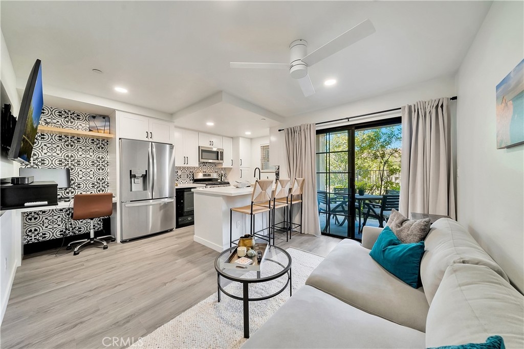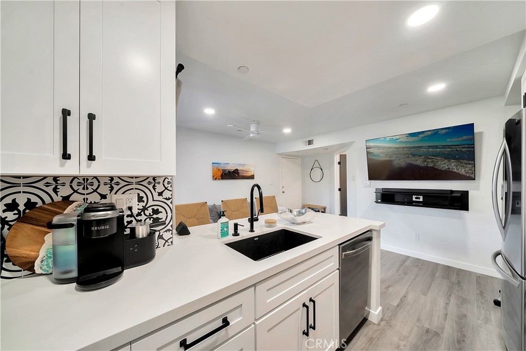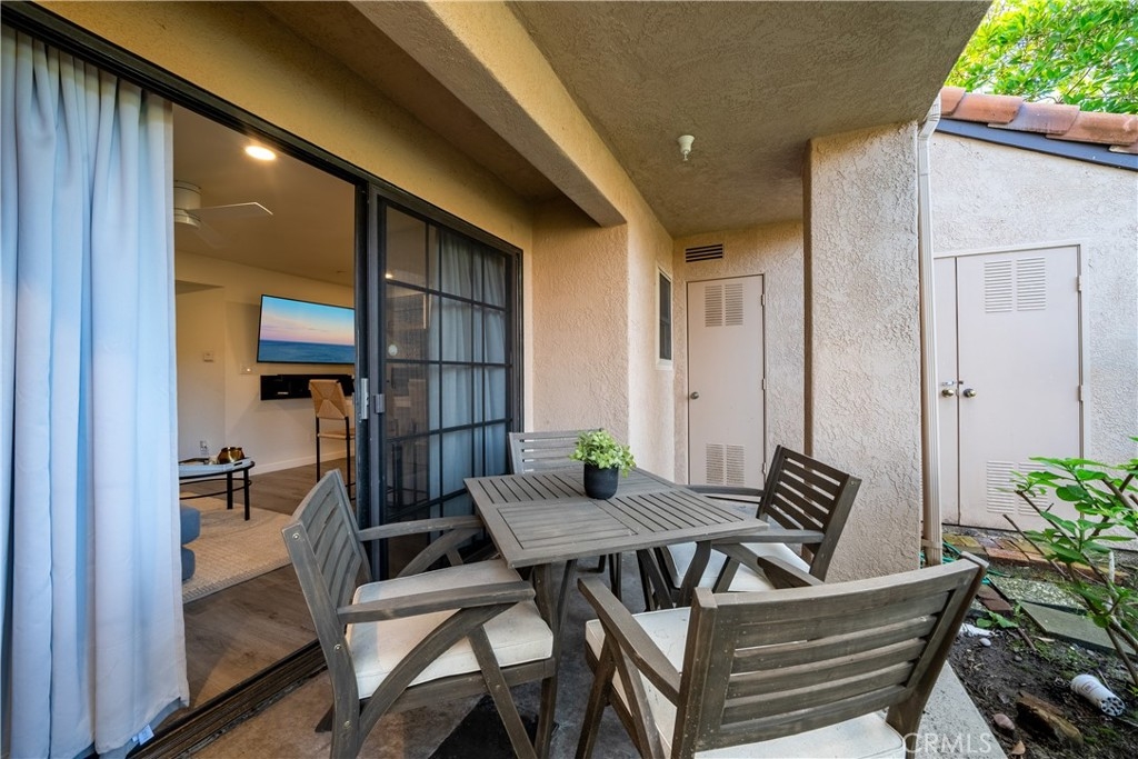 Tucked away in the hills of Rancho San Clemente, Vista Pacifica offers one of the most upgraded and charming main floor single bedroom units to the market. This condo has undergone an extensive remodel in 2022 to offer recessed lighting, a brand new open kitchen that features all new white shaker style cabinetry, custom floating oak shelves, custom built in wine fridge, custom work space/coffee bar, expanded quartz counter/bar space, a striking backsplash, Blanco Kitchen Sink with a Hansgrohe faucet plus a new dishwasher and refrigerator. The spacious bedroom opens to a remodeled bath that features a walk in shower with a custom glass sliding door, a new toilet, new stackable washer and dryer, new vanity and styled with gorgeous tile throughout. Perfectly appointed near the pool, you can enjoy dining el fresco on the outdoor patio or enjoy tranquil views from inside. Vista Pacifica is just minutes to The San Clemente Outlets as well as Downtown San Clemente with it's beautiful beaches, surf breaks, boutique shopping, great dining and more!