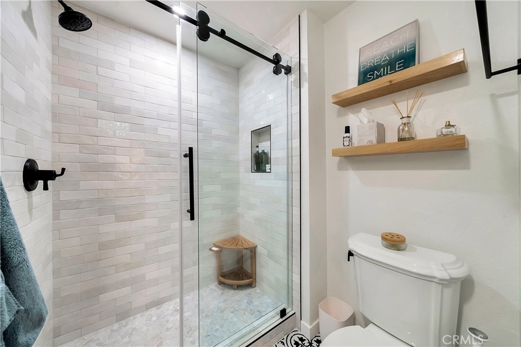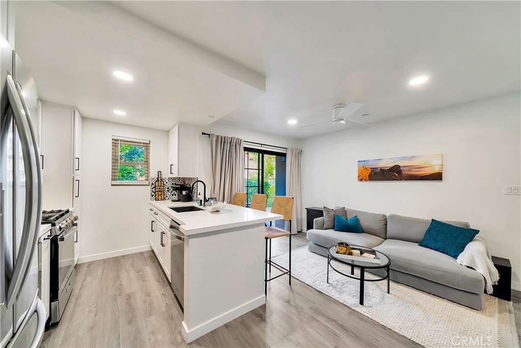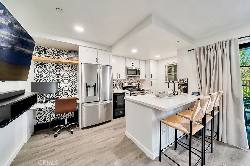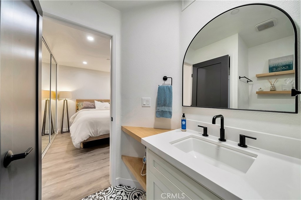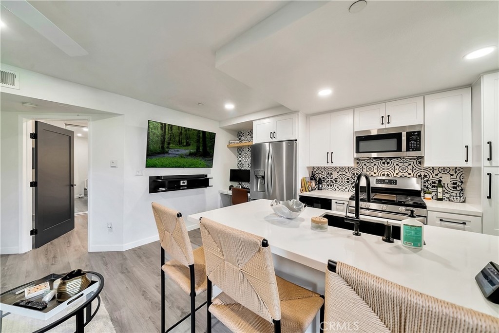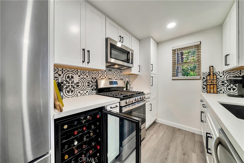 Tucked away in the hills of Rancho San Clemente, Vista Pacifica offers one of the most upgraded and charming main floor single bedroom units to the market. This condo has undergone an extensive remodel in 2022 to offer recessed lighting, a brand new open kitchen that features all new white shaker style cabinetry, custom floating oak shelves, custom built in wine fridge, custom work space/coffee bar, expanded quartz counter/bar space, a striking backsplash, Blanco Kitchen Sink with a Hansgrohe faucet plus a new dishwasher and refrigerator. The spacious bedroom opens to a remodeled bath that features a walk in shower with a custom glass sliding door, a new toilet, new stackable washer and dryer, new vanity and styled with gorgeous tile throughout. Perfectly appointed near the pool, you can enjoy dining el fresco on the outdoor patio or enjoy tranquil views from inside. Vista Pacifica is just minutes to The San Clemente Outlets as well as Downtown San Clemente with it's beautiful beaches, surf breaks, boutique shopping, great dining and more!