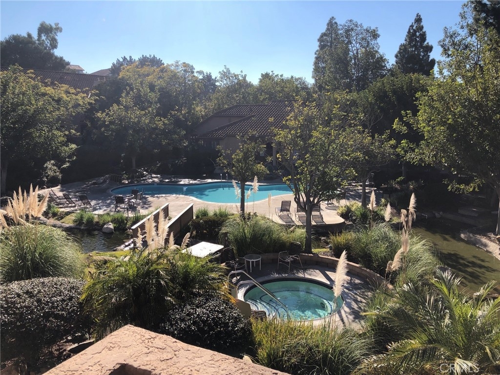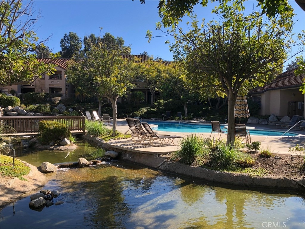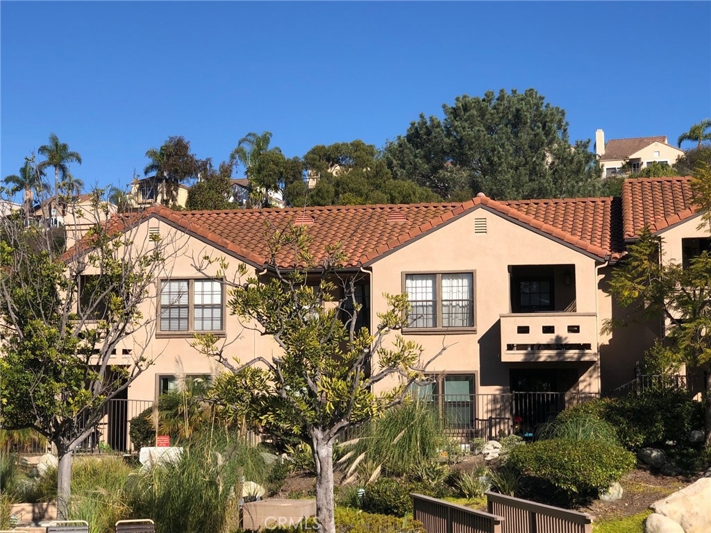 Upper End Unit Vista Pacifica! Ideally located, this private end unit townhome is surrounded by mature trees and overlooks the tranquil community waterfall fed ponds, pool and spa. Enter into the spacious open plan living and dining area with cathedral ceilings, laminate wood flooring and natural light. The kitchen has granite counters, white cabinets, stainless steal appliances and a nice dining counter. Each of the 2 bedrooms has its own en-suite bathroom, adding to the resort style feel of this floor plan. Located in beautiful Rancho San Clemente, the property enjoys direct access to hiking and biking trails with a short drive to beaches, shops, golf, restaurants and shopping.