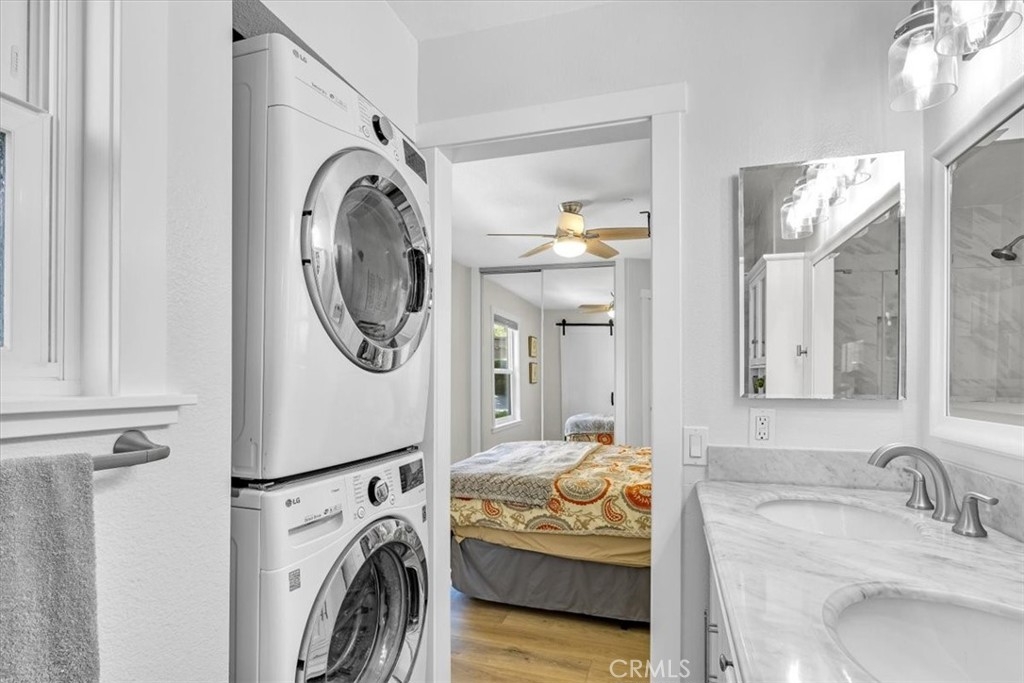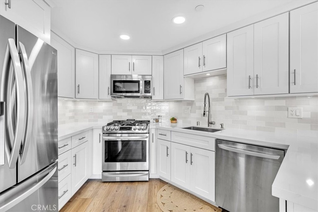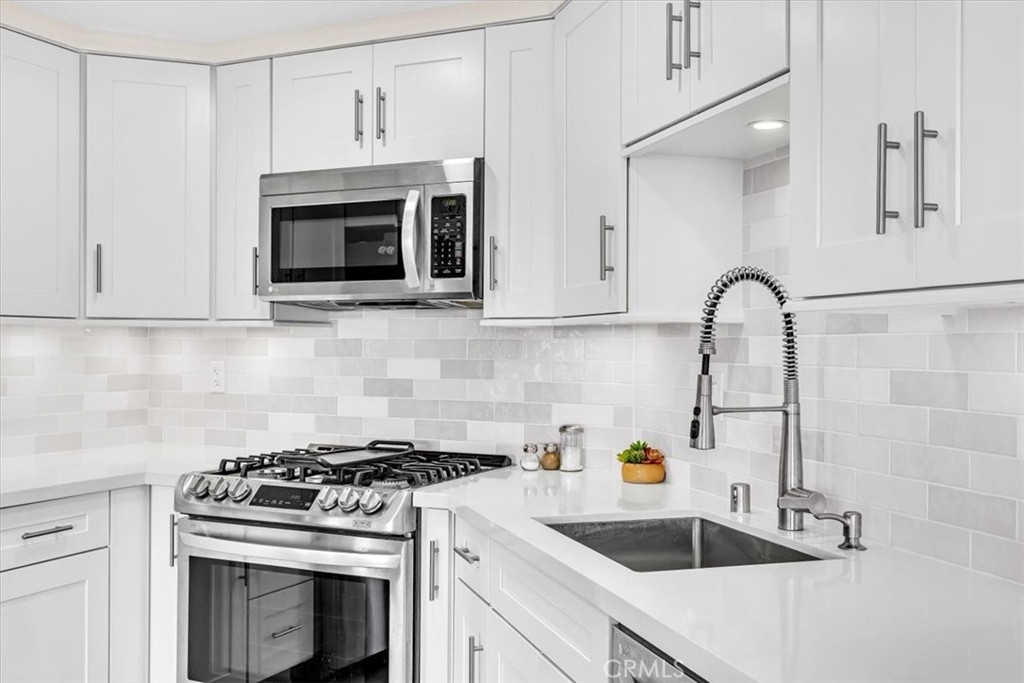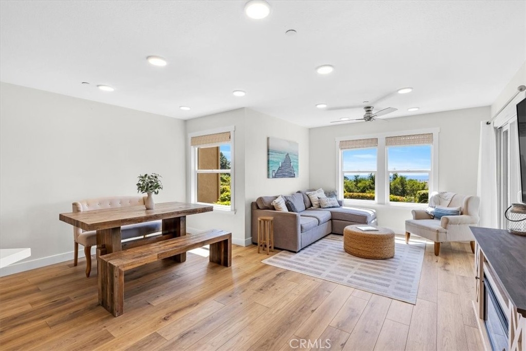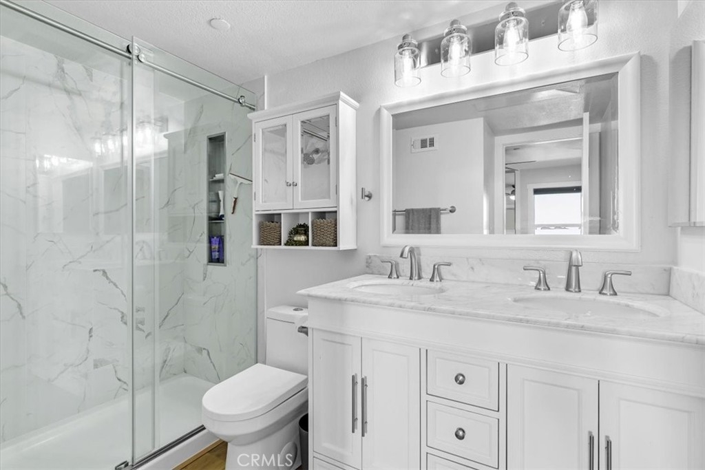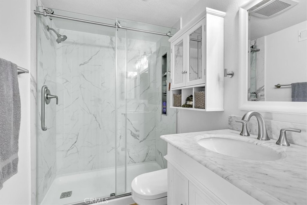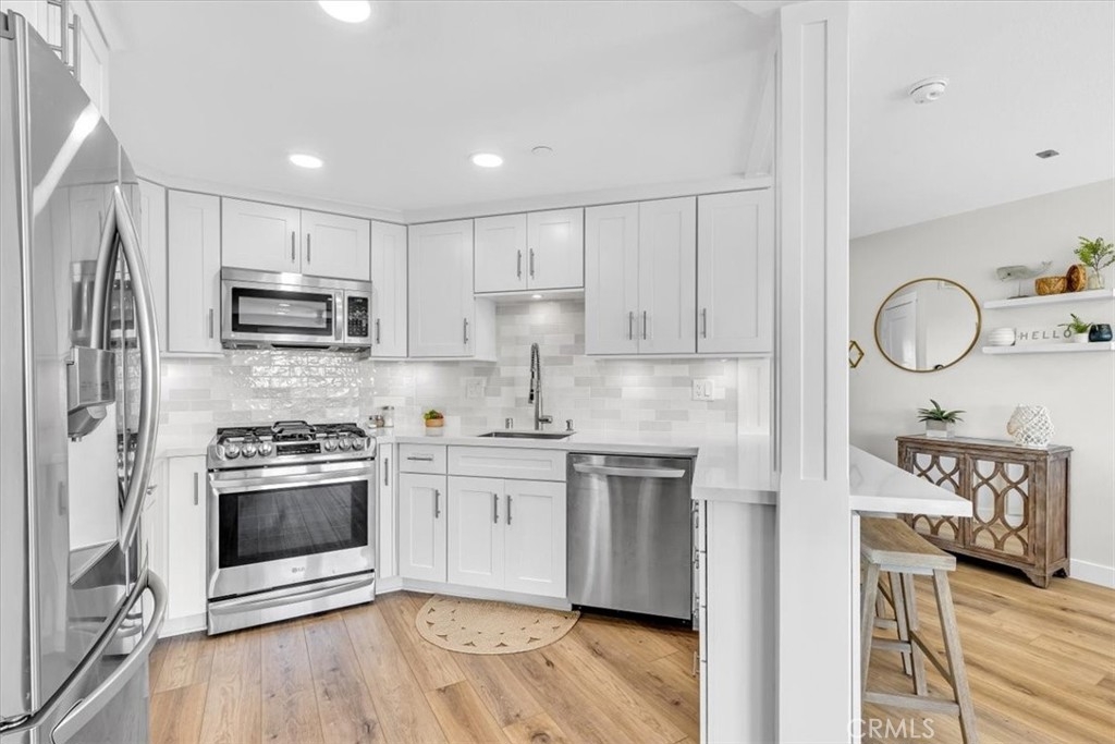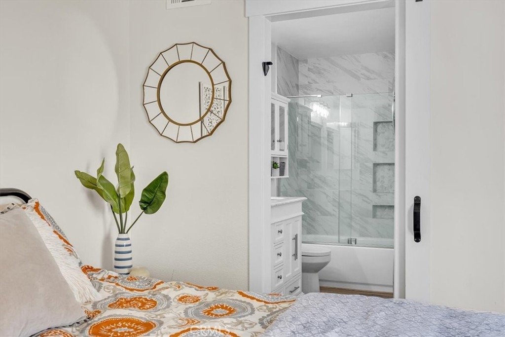 Step into a world of luxury with this stunning OCEAN-VIEW condo, meticulously remodeled to perfection. With a contemporary open floor plan, this 2-bedroom, 2-bath residence enjoys a ground level location, offering effortless access & SPECTACULAR OCEAN VIEWS. Your new coastal condo offers a show-stopping kitchen that has been completely reimagined with custom white shaker cabinetry, sleek quartz countertops, a stylish subway tile backsplash, & a full suite of stainless steel appliances. The breakfast bar is perfect for casual dining & entertaining. Enhanced by upgraded recessed LED lighting, wide plank luxury vinyl wood flooring, & modern baseboards, every inch of this home exudes sophistication. Both bathrooms are a masterpiece, featuring custom dual sink vanities with slab marble countertops. The primary en-suite dazzles with a custom walk-in shower & frameless glass enclosure, while the guest en-suite boasts a luxurious tub with a custom surround & frameless glass enclosure as well as a custom barn door for privacy. The laundry area has been expanded to accommodate a full-size stackable washer/dryer, another custom upgrade for ultimate convenience. The primary suite is a sanctuary with breathtaking ocean views & dual closets with mirrored doors. Ceiling fans in both bedrooms & the living room ensure you always enjoy the cool ocean breeze. Custom vinyl windows with custom coverings & all new interior doors/hardware complete the look of your new home. Enjoy the beauty of the ocean views from your living/dining rooms & kitchen or step out to your back patio, opening to a lush grassy space, the perfect private retreat to soak in the stunning vistas. The detached single-car garage is extra deep & offers additional storage space. Located in the highly sought-after Vista Pacifica community, you’ll have access to two fabulous pools/spas plus tranquil streams & waterfalls that create a resort-like ambiance. There is even the opportunity for on-site RV/boat parking (based on availability)! And, of course, more of those panoramic ocean views throughout the community. Conveniently located near Lifetime Fitness, miles of hiking trails, schools, shops, & freeways, this condo offers not only a beautiful living space but also easy access to the vibrant downtown San Clemente scene & world-class beaches & surf. With its perfect blend of style, comfort & location, this is more than just a home; it’s a lifestyle ... Your best life starts here!