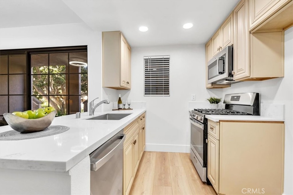 PRICE IMPROVEMENT!! Welcome to your new sanctuary in the heart of Rancho San Clemente! This stunning ground-level 1-bedroom condo is nestled in the hidden gem ocean-view community of Vista Pacifica, where coastal living meets affordability. With a fabulous price of just $435,000, this is an exceptional opportunity to own a piece of paradise. Step inside to discover a beautifully updated interior featuring all-new solid slab quartz counters in the kitchen, complemented by custom glazed creamy cabinetry and brand-new stainless steel appliances. The entire home boasts all new wide plank luxury vinyl wood flooring, providing a modern touch that’s both stylish and easy to maintain. Freshly painted walls and all new contemporary style baseboards create a crisp, inviting atmosphere throughout. The bathroom has been thoughtfully updated with a fresh white vanity, new fixtures, and a newly refinished shower/tub, ensuring a tranquil retreat for your daily routine. Enjoy extended living space on the private front patio with the tranquil sounds of the nearby wandering brooks & waterfalls as you sip your coffee in the mornings or unwind in the evenings. Additional storage space off the patio ensures there is a place for everything in your new home. Enjoy Vista Pacifica's outstanding amenities, including two sparkling pools (1 which is heated year-round) and spas, all just a short stroll from your door. And finding a private single-car garage at this price point is just one of the many unexpected bonuses of this home. In the evening, a quick stroll around your community takes you to breathtaking ocean view sunsets as well. Vista Pacifica even offers boat/RV storage on-site (based on availability) for those who love adventure. Conveniently located near Lifetime Fitness, miles of hiking trails, schools, shops, & freeways, your new home offers not only a beautiful living space but also easy access to the vibrant downtown San Clemente scene plus world-class beaches & surf. With its perfect blend of style, comfort & location, this is more than just a home; it’s a lifestyle ... Your best life starts here!