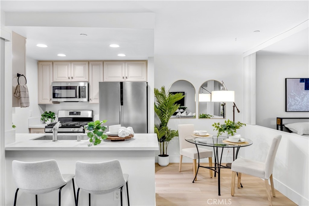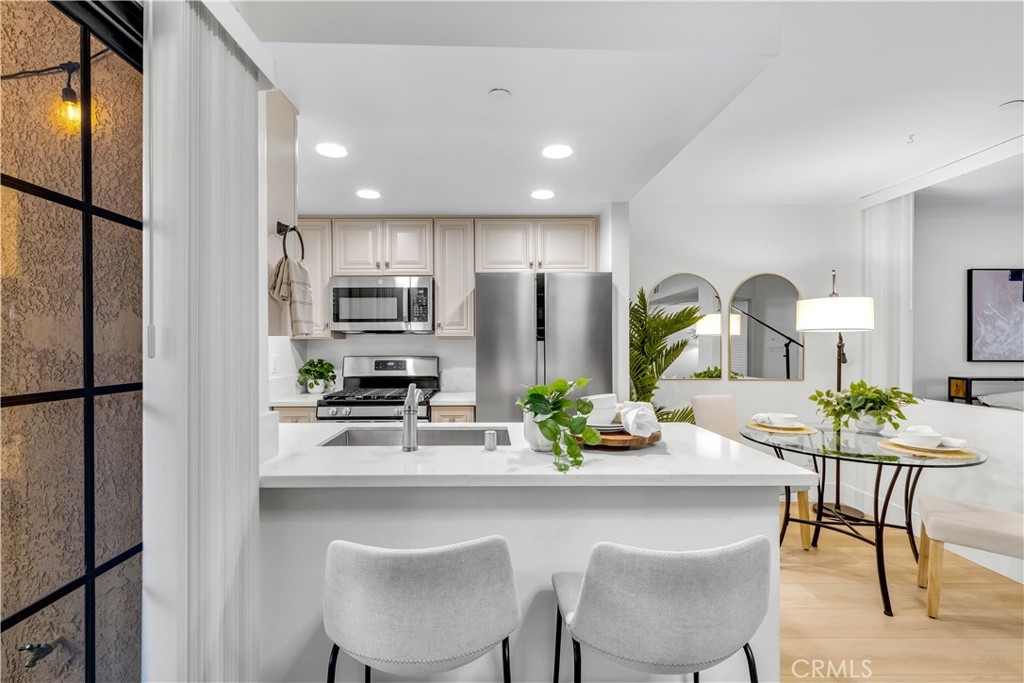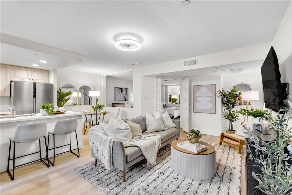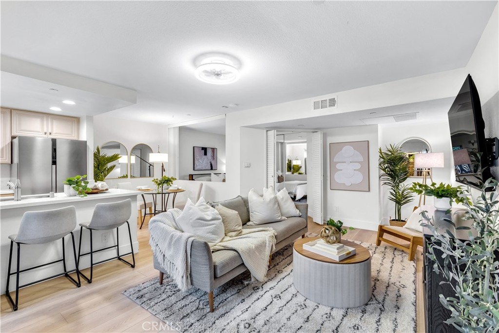 ANOTHER PRICE IMPROVEMENT!! Welcome to your new sanctuary in the heart of Rancho San Clemente! This stunning ground-level 1-bedroom condo is nestled in the hidden gem ocean-view community of Vista Pacifica, where coastal living meets affordability. This is an exceptional opportunity to own a piece of paradise. Step inside to discover a beautifully updated interior featuring all-new solid slab quartz counters in the kitchen, complemented by custom glazed creamy cabinetry and brand-new stainless steel appliances. The entire home boasts all new wide plank luxury vinyl wood flooring, providing a modern touch that’s both stylish and easy to maintain. Freshly painted walls and all new contemporary style baseboards create a crisp, inviting atmosphere throughout. The bathroom has been thoughtfully updated with a fresh white vanity and new fixtures, ensuring a tranquil retreat for your daily routine. There's even a new washer/dryer stack in the laundry closet - this home truly has everything you need! Enjoy extended living space on the private enclosed front patio with the tranquil sounds of the nearby wandering brooks & waterfalls as you sip your coffee in the mornings or unwind under the twinkle lights in the evenings. There's even a small turf area on the patio for your furry friends. Additional storage space off the patio ensures there is a place for everything in your new home. Enjoy Vista Pacifica's outstanding amenities, including two sparkling pools (1 which is heated year-round) and spas, all just a short stroll from your door. And finding a private single-car garage at this price point is just one of the many unexpected bonuses of this home. In the evening, a quick stroll around your community takes you to breathtaking ocean view sunsets as well. Vista Pacifica even offers boat/RV storage on-site (based on availability) for those who love adventure. Conveniently located near Lifetime Fitness, miles of hiking trails, schools, shops, & freeways, your new home offers not only a beautiful living space but also easy access to the vibrant downtown San Clemente scene plus world-class beaches & surf. With its perfect blend of style, comfort & location, this is more than just a home; it’s a lifestyle ... Your best life starts here!
