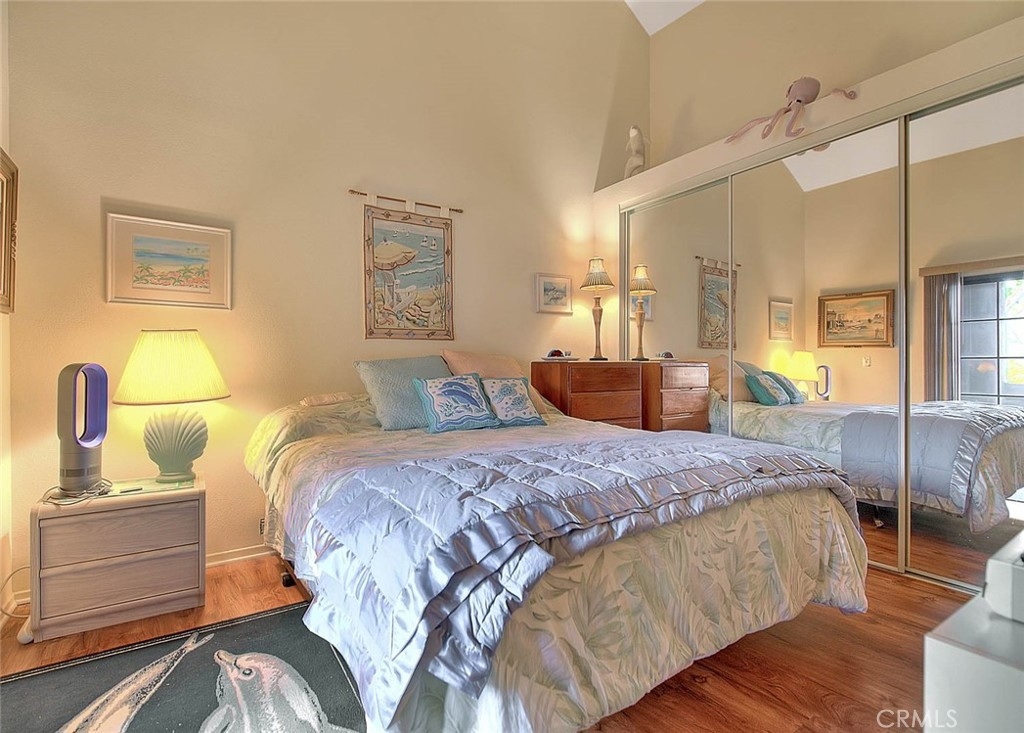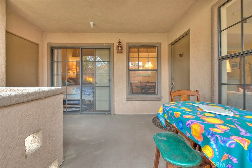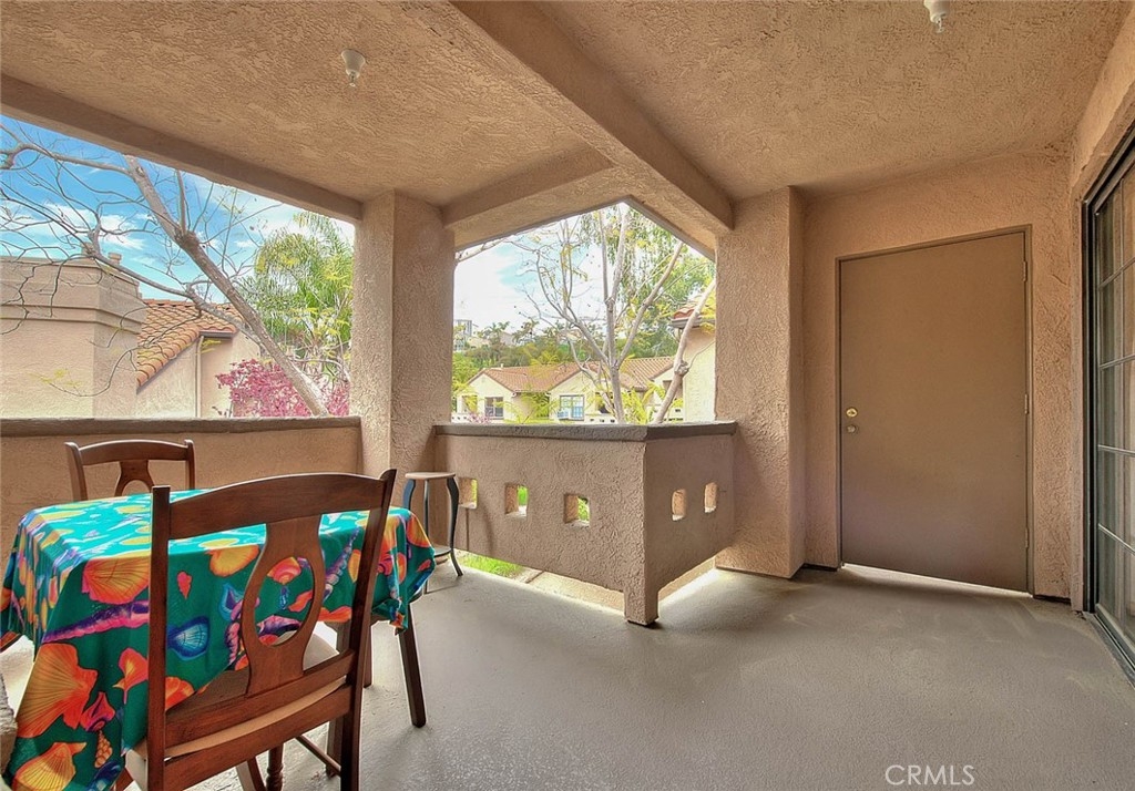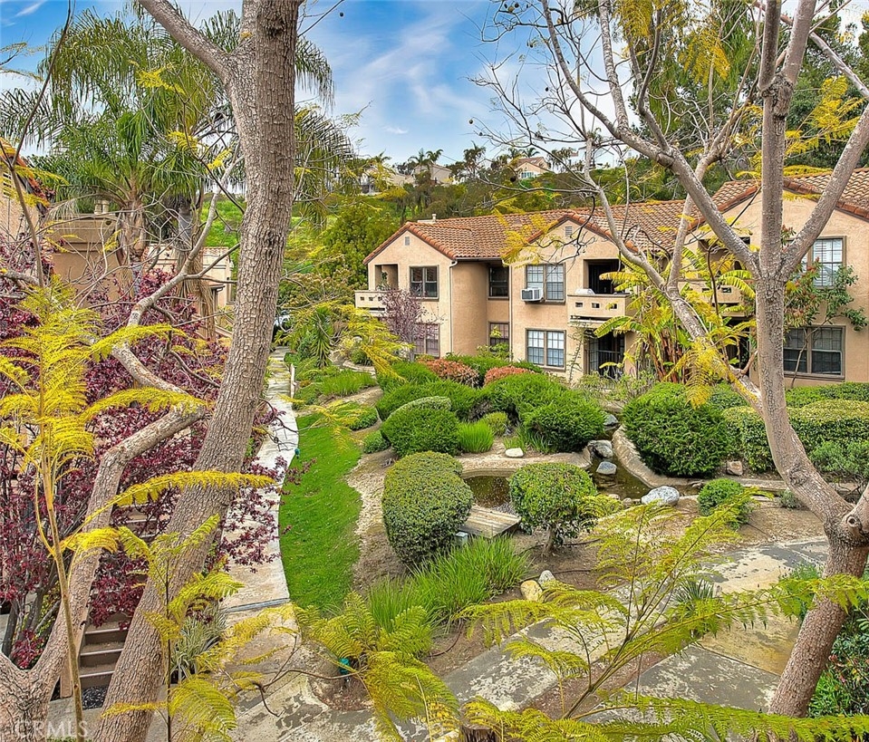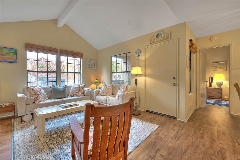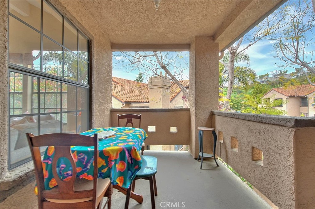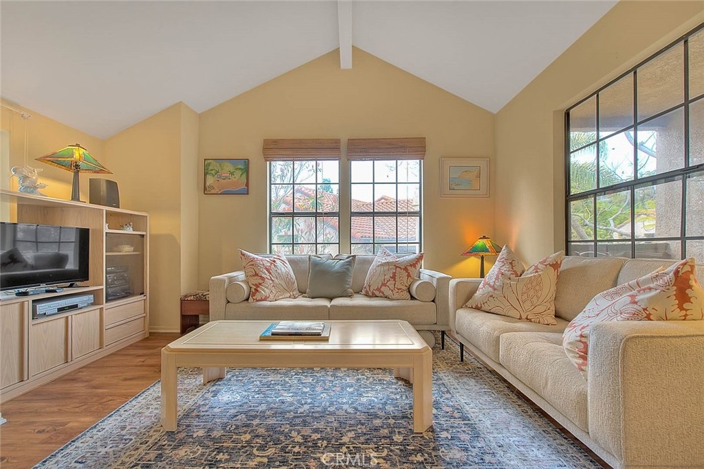 Move-in-ready with a wonderful floorplan! 2 bedroom/2 bathroom upstairs unit located in desirable Vista Pacifica community within Rancho San Clemente. No neighbors above and no interior steps, interior is all single level. Step into the spacious living room boasting cathedral ceilings, neutral décor, an abundance of natural light & tastefully done plank flooring. Kitchen design offers plenty of cabinetry storage & counter space to work. Convenient stackable washer and dryer are located in a laundry closet within the kitchen.(washer/dryer will remain) Spacious dining area opens to the kitchen and living room, a very inviting floor plan for entertaining. The exterior patio provides an additional option for outdoor dining and guests. Enjoy dual primary suites each with dramatic vaulted ceilings, plank flooring, one with a large walk-in closet and full bath, and the other with a spacious closet, full bath and sliding doors providing direct access to the patio. Serene and private patio setting with tranquil views overlooking the community's lush landscaping and peaceful water features. The unit has a detached single car garage with opener plus one other outdoor reserved parking space. The beautifully maintained Vista Pacifica community offers two pools, spa, clubhouse and is in an excellent location. Minutes from San Clemente Pier, renowned beaches, hiking trails, outlets, downtown shopping and unique dining options.