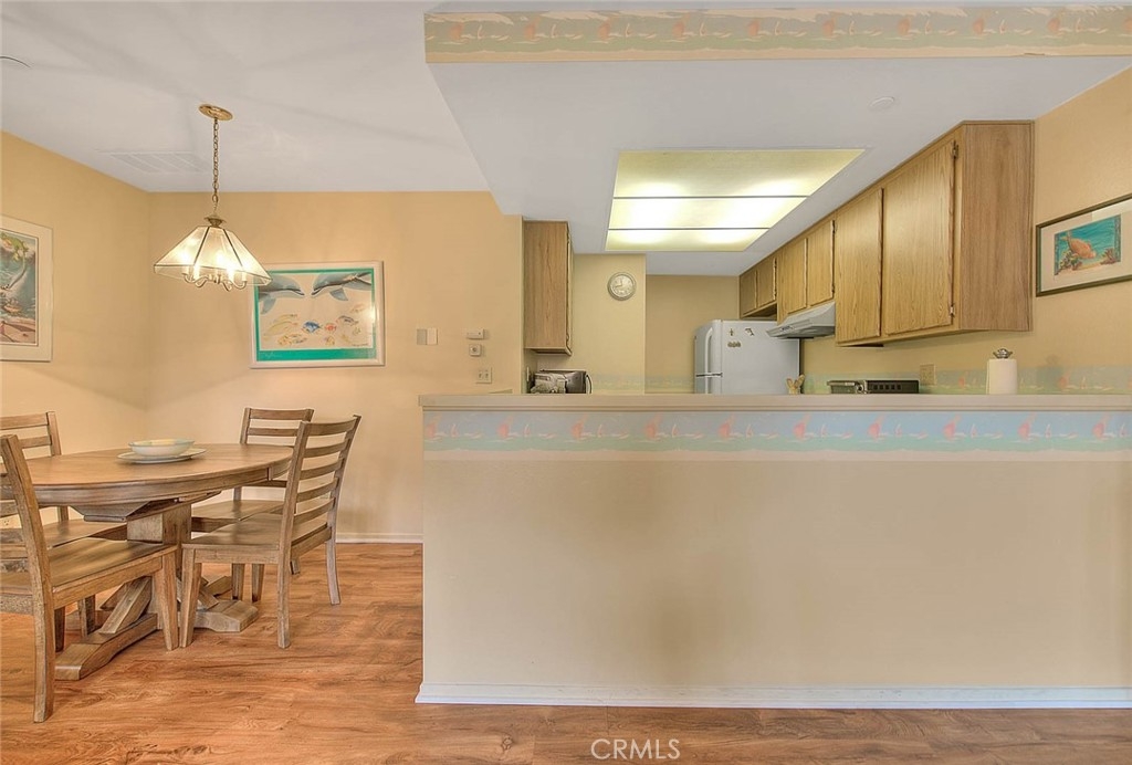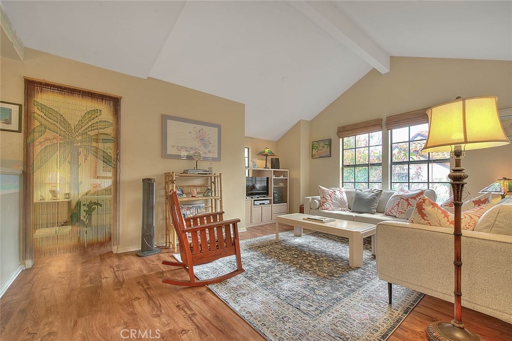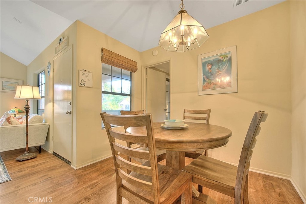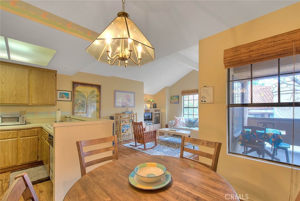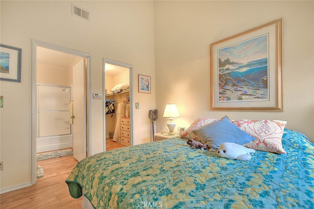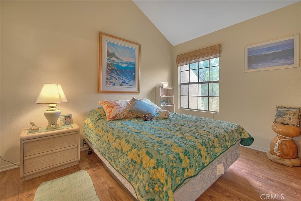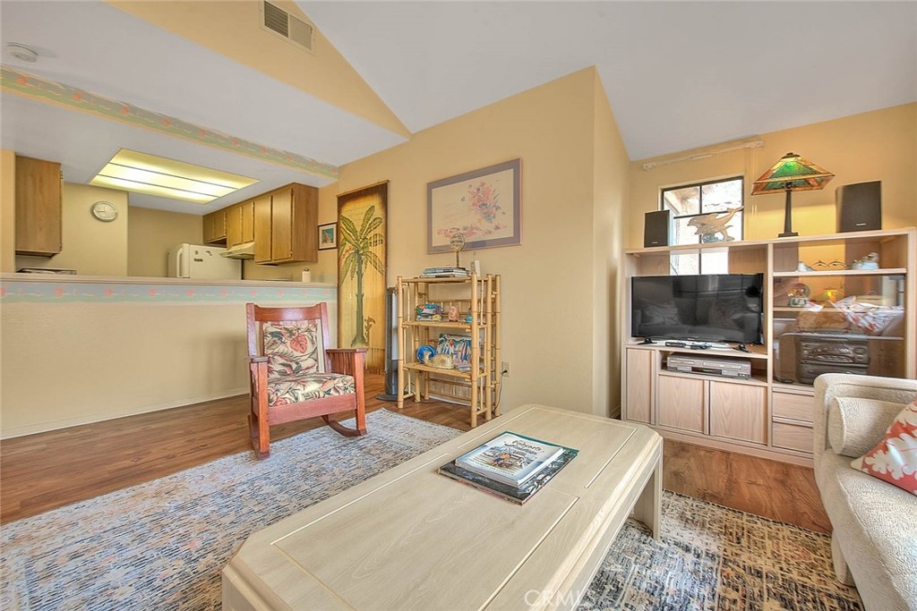 Move-in-ready with a wonderful floorplan! 2 bedroom/2 bathroom upstairs unit located in desirable Vista Pacifica community within Rancho San Clemente. No neighbors above and no interior steps, interior is all single level. Step into the spacious living room boasting cathedral ceilings, neutral décor, an abundance of natural light & tastefully done plank flooring. Kitchen design offers plenty of cabinetry storage & counter space to work. Convenient stackable washer and dryer are located in a laundry closet within the kitchen.(washer/dryer will remain) Spacious dining area opens to the kitchen and living room, a very inviting floor plan for entertaining. The exterior patio provides an additional option for outdoor dining and guests. Enjoy dual primary suites each with dramatic vaulted ceilings, plank flooring, one with a large walk-in closet and full bath, and the other with a spacious closet, full bath and sliding doors providing direct access to the patio. Serene and private patio setting with tranquil views overlooking the community's lush landscaping and peaceful water features. The unit has a detached single car garage with opener plus one other outdoor reserved parking space. The beautifully maintained Vista Pacifica community offers two pools, spa, clubhouse and is in an excellent location. Minutes from San Clemente Pier, renowned beaches, hiking trails, outlets, downtown shopping and unique dining options.