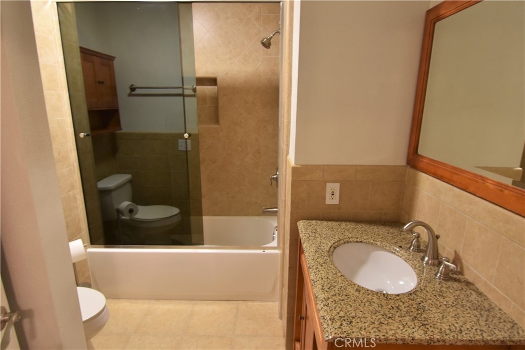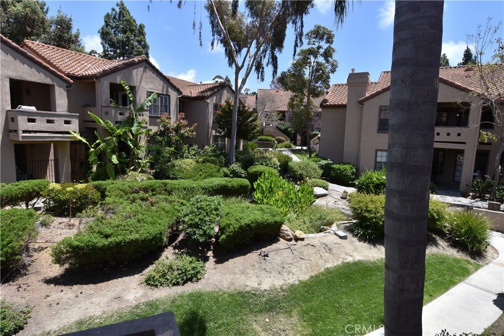 Motivated seller. Large price reduction, submit all offers. Relax and enjoy the peace and quiet. This spacious 1-bedroom upper level condo is nicely upgraded with wood laminate flooring. There is a newer kitchen that features granite counter tops, a breakfast bar and stainless-steel appliances and refrigerator. All rooms have high vaulted ceilings plus custom lighting. The bedroom is very spacious and has a wall of mirrors and closet along with a ceiling fan and lighting. The bathroom has been nicely upgraded with granite vanity and includes stackable washer and dryer. Close by is a one car garage and plenty of open parking. Association amenities include a large pool and spa plus views of bubbling stream and pond with plenty of tropical landscaping. The condo is a short distance to beaches, freeway and shopping. Hurry on this great opportunity!