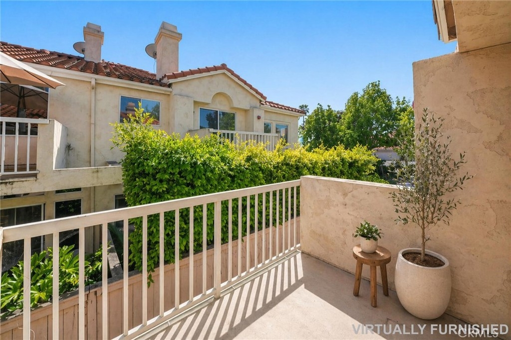 Positioned in the sought-after Vilamoura community of Rancho San Clemente, 1201 Via Presa offers a rare blend of privacy, natural light, and effortless coastal living. This two-story end-unit townhome spans approximately 1,847 square feet with three bedrooms and two and a half bathrooms, featuring only one shared wall and no neighbors above or below. Dramatic ceilings and expansive windows create an airy, open feel throughout the main living areas, where a dual-sided fireplace adds warmth and character between the living and dining spaces. The kitchen has been tastefully updated with granite countertops, upgraded cabinetry, a center island, and direct access to a private patio—perfect for casual outdoor dining or entertaining. Upstairs, the primary suite serves as a comfortable retreat with vaulted ceilings, its own fireplace, a private balcony, and an updated ensuite bath, while two additional bedrooms offer flexibility for guests, a home office, or growing needs. A secluded outdoor patio surrounded by mature landscaping enhances the home’s sense of privacy, and additional features include interior laundry, a direct-access two-car garage, and access to Vilamoura’s pool, spa, and BBQ amenities, all conveniently located near local parks, scenic trails, shopping, dining, and San Clemente’s well-known beaches.