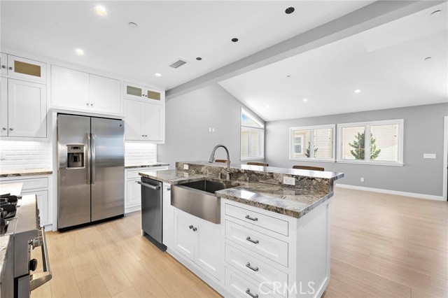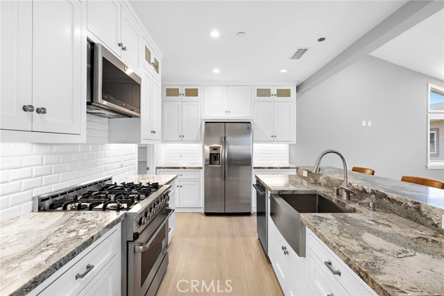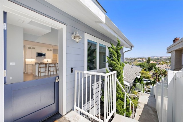 Located in the heart of North Beach, this contemporary coastal condominium designed by renowned local architect Jack Garland and built in 2019 pairs sophisticated seaside style with an unbeatable location. Situated as the rear unit of an intimate two-residence building, this 3-bedroom, 2.5-bath home lives like a single-family residence, sharing only one common wall and offering the freedom of no HOA dues. Spanning two stories, it showcases a bright, open floor plan with vaulted ceilings, a gourmet kitchen with a granite island, walk-in pantry, and high-end appliances. The upstairs primary suite is a refined retreat with beamed ceilings, a generous walk-in closet, a spa-inspired bath featuring a freestanding tub and separate shower, and exclusive access to the 318 sq ft rooftop deck where panoramic easterly views of hills and city lights create one of San Clemente’s most unique perspectives. Two additional bedrooms are located on the main level. A standout feature is the expansive 642 sq ft garage, rare for the area, equipped with EV charging, abundant storage, and space for multiple vehicles. Paid-off solar provides energy efficiency and cost savings, while a dedicated laundry room adds everyday convenience. All this is just a short walk to North Beach, the San Clemente Beach Trail, the iconic Ole Hanson Beach Club, The Casino, and an array of dining options including the highly anticipated Miramar Food Hall.