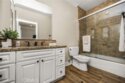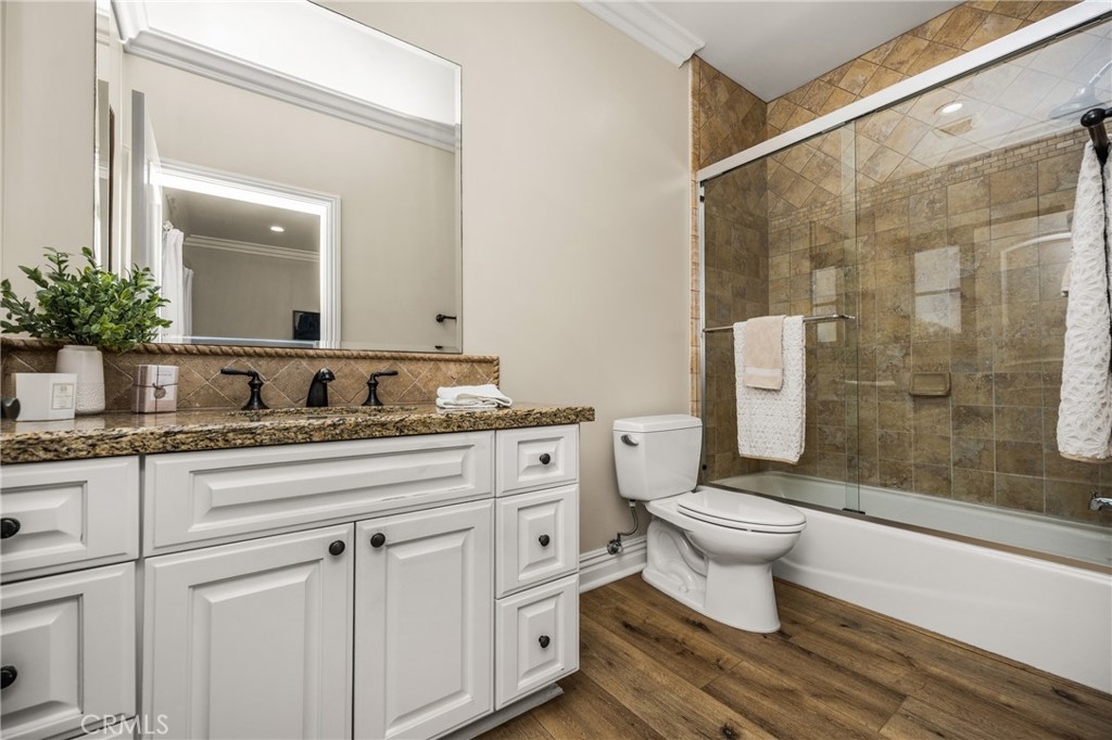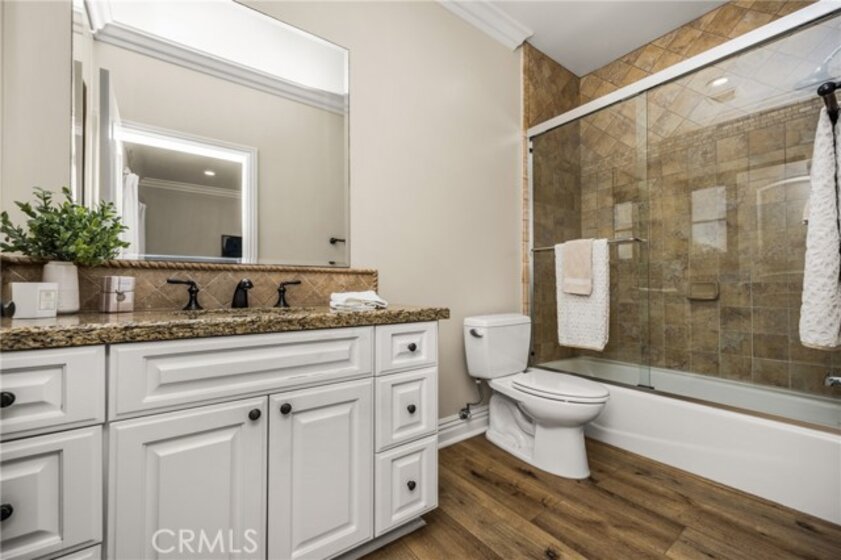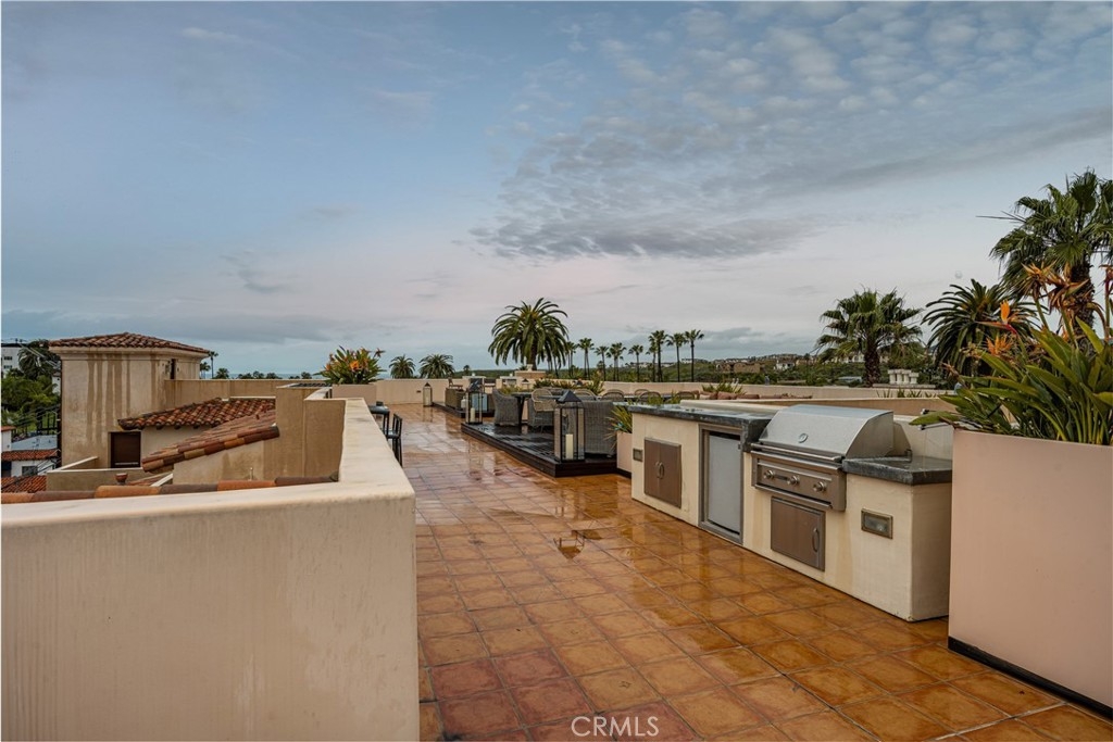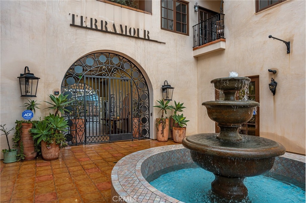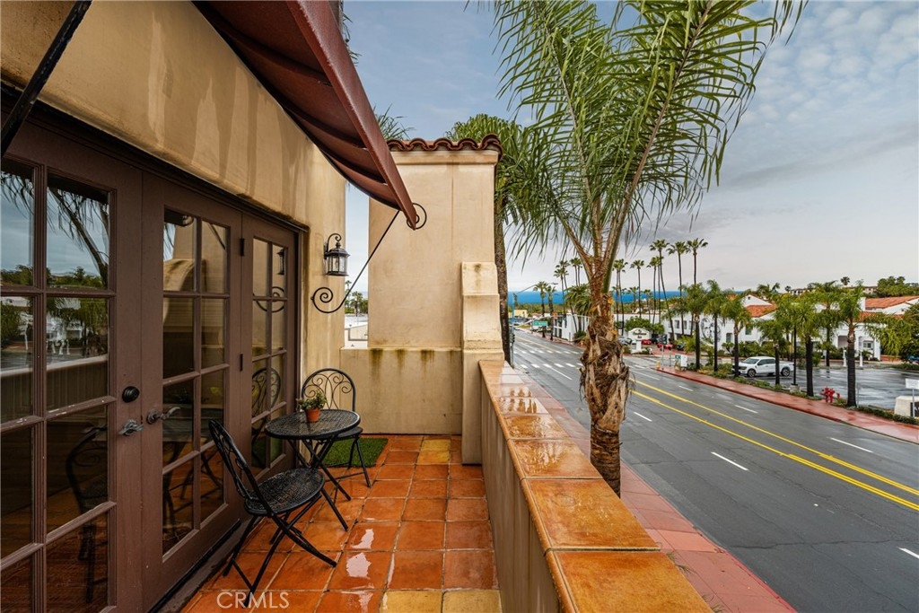 Located just blocks from the shores of San Clemente’s beautiful coastline, this exceptional residence offers the best of coastal living within a boutique 22-home community built in 2010. Terramour welcomes you with its Spanish-inspired architecture, featuring arched windows, wrought-iron accents, and a charming front plaza complete with a tranquil water fountain. A gated entrance and elegant foyer set the tone for the refined lifestyle within. This highly desired second-floor end unit showcases west-facing peek-a-boo ocean views and an abundance of natural light. Enjoy coastal breezes from two outdoor spaces: a covered front patio off the living room and a private side balcony off the primary suite. Inside, the open-concept living area is warm and inviting, highlighted by a fireplace, built-in storage cabinetry with shelving, and stylish vinyl wood-plank flooring. The kitchen flows seamlessly into the dining room and features granite countertops, a stone backsplash, stainless steel appliances, and a walk-in pantry—perfect for both everyday cooking and entertaining. The home offers two spacious bedrooms, each with its own en-suite bathroom, plus an additional powder room for guests. The primary suite is a serene retreat, enhanced by French doors, a generous walk-in closet, and a luxurious bathroom with a walk-in shower, separate soaking tub, and privacy toilet room. The secondary bedroom also includes its own well-appointed full bath. A dedicated laundry closet with full-sized LG washer and dryer adds convenience. Terramour residents enjoy access to a spectacular rooftop deck with stunning ocean views—an ideal setting for gatherings, BBQs, or simply unwinding as the sun sets. Whether taking the convenient elevator or the stairs, common areas are easily accessible throughout the community. Additional features include a secure gated subterranean parking garage with two designated spaces and a private storage unit. With close proximity to San Clemente’s sparkling beaches, the iconic pier, and vibrant downtown shops and dining, this home offers an unbeatable blend of comfort, style, and coastal charm.