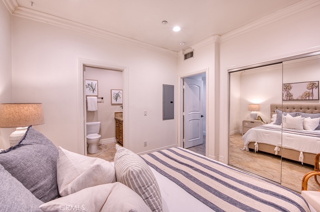 Turnkey, open-concept home offering single-level living with 2 bedrooms, 2.5 baths and a private balcony. The bright kitchen features stainless steel appliances, granite counters and flows directly into the family room. The spacious master suite includes a walk-in closet, French doors to the balcony and a spa-like bath with soaker tub, walk-in shower, dual vanities and granite countertops. The secondary bedroom has an oversized closet and an attached full bath. In-unit laundry adds convenience, while a luxurious rooftop deck with ocean views provides an exceptional space for relaxing and entertaining. Secure, gated subterranean parking with elevator access and a private storage area for bikes, surfboards and more complete the offering. Ideally located in vibrant North Beach and within walking distance to the beach, the soon to open Miramar Food Court, Los Molinos district, restaurants and all that San Clemente has to offer. A must-see coastal residence.