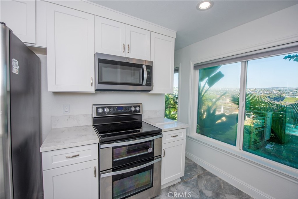 Beautifully upgraded 1 bedroom, 1 bathroom condo with breathtaking ocean views. Enjoy this 55+ community costal living experience in beautiful San Clemente. Modern amenities with a small town feel. Located in Bay Cliff Village, this home features a 1 bedroom, 1 bathroom and overlooks the bluff with ocean and city lights view. Spacious living area and recently upgraded throughout. New kitchen cabinets and counter tops with all new stainless steel appliances. Upgraded bath with new cabinets and counter tops. Fresh canned lighting throughout. This home has an assigned parking space and a detached one car garage with automatic garage door opener. Landscaping, water, sewer and trash are all included in the HOA dues. Beach, San Clemente pier, restaurants and local amenities are all a short drive away.