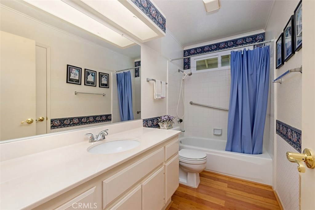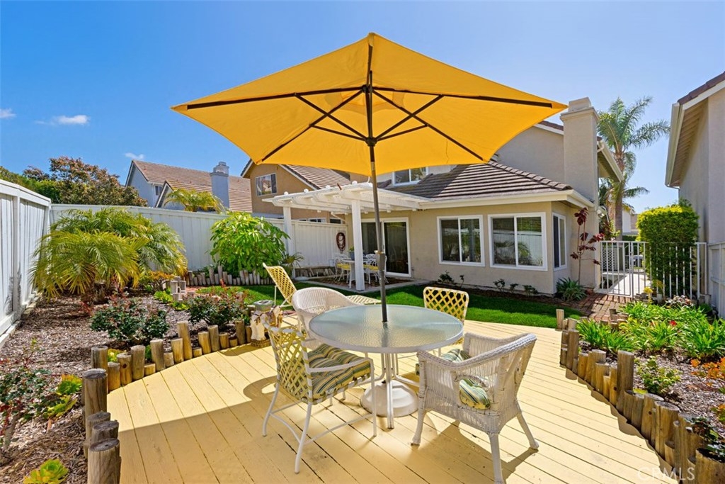 Welcome to this charming detached family home in the New Providence community with 3 bedrooms upstairs, an optional 4th bedroom downstairs and 3 full baths including one on the first floor. The open floor plan is filled with natural light from a large skylight, fireplace, bamboo wood floors, crown molding, wood shutters, a remodeled kitchen with granite counter top and a 2-car garage with storage. The master bedroom is beautifully designed with an en-suite bathroom equipped with dual vanities and a walk-in shower. Your guests will enjoy happy hour in your private back yard complete with a large deck and lush landscaping. This home is centrally located in the heart of San Clemente with easy access to The Outlets, award winning schools, world-class beaches and minutes from downtown shops, restaurants and entertainment. There is no mello-roos and the HOA dues cover most of the exterior maintenance. This is a great opportunity to add your personal decorating touches to create your own home experience.