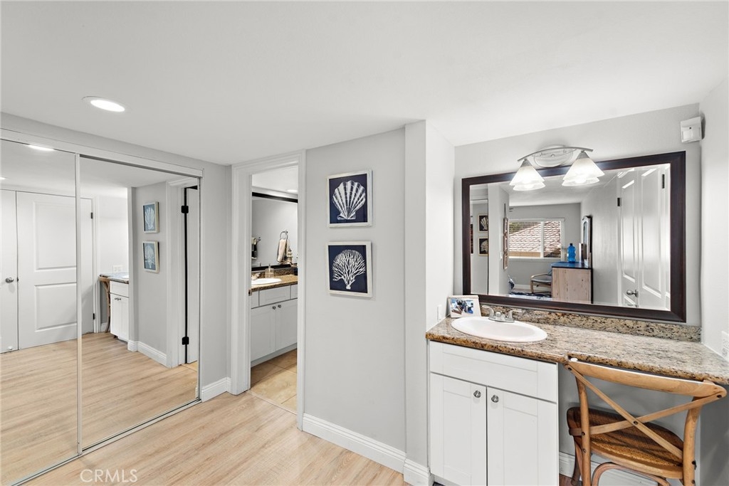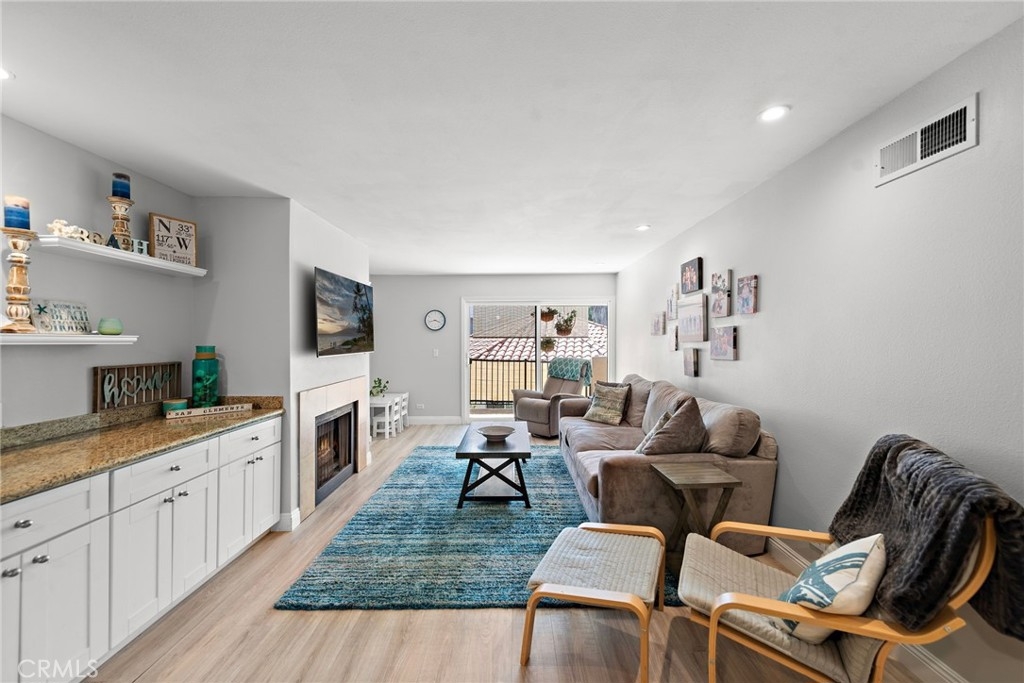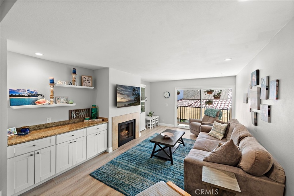 A perfect seaside retreat within walking distance to San Clemente State Beach and the San Clemente Beach Trail! Located in a highly desirable area of Southwest San Clemente and nestled in the quaint coastal condo community known as Horizons, this charming 2 bedroom, 2 bath unit is a unique opportunity to be at this price range and so close to the beach! Single level with multiple updates throughout. A spacious 1,212 sq ft open floor plan filled with natural light creates a welcoming ambiance upon entry. Style and function meet in the updated kitchen boasting granite counters, soft close cabinetry, and stainless-steel appliances. A fun dry bar area with built-in cabinetry, a cozy fireplace, and adjacent long balcony all highlight the thoughtfully designed living room. Retreat to either bedroom to discover ceiling fans, mirrored closet doors, and updated flooring. Both bathrooms are also beautiful with updated vanities and granite counters. Side by side laundry hookups inside. One assigned carport parking space with storage cabinets and one assigned uncovered space. Residents have access to wonderful community amenities including a large spa and a BBQ area/patio overlooking a serene canyon. The association monthly dues also include trash, water, gas, and fire insurance. Guest parking available. Whether you are looking for a vacation home, investment, or a year-round residence, this home perfectly fits any need! Come experience coastal living at its finest!