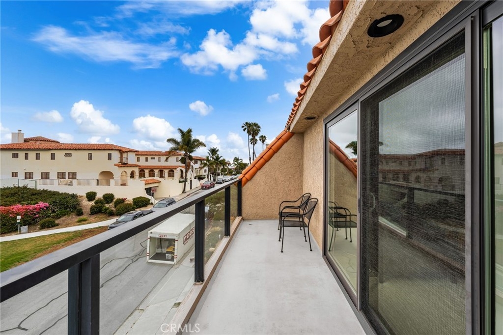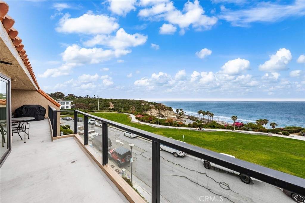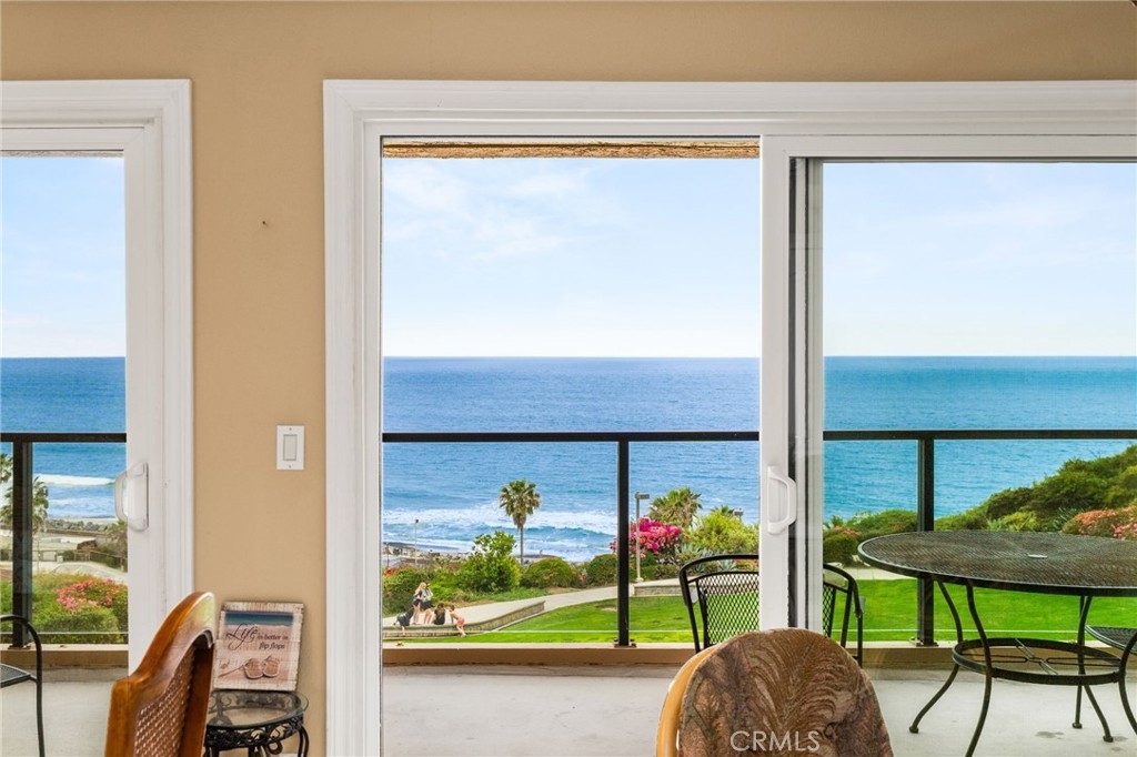 Experience breathtaking, panoramic ocean views from every room of this spacious 3-bedroom, 2-bath condo, ideally located directly across from the scenic park on "The Loop" in southwest San Clemente. With Calafia Beach just steps away—literally across the street and down a short flight of stairs—you’ll have easy access to one of the area's most beautiful beaches. The inviting living room offers multiple spots to take in the stunning vistas of both the park and ocean, making it the perfect place to unwind. The kitchen is a chef’s dream, with plenty of cabinet space and sleek stainless-steel appliances. The kitchen flows effortlessly into the dining area, with direct access to the ocean-view patio. This home epitomizes Southern California’s indoor/outdoor living, with a spacious deck offering ample room for lounging and entertaining. Drift off to sleep in the private primary ensuite bedroom, where the sound of the waves and gentle ocean breezes through sliding glass doors make every night feel like a retreat. The primary bath features a generous closet, dual sinks, and a walk-in shower. The expansive deck is the heart of the home, with designated areas for both dining and relaxation. A one-car garage, plus an additional parking space, is a rare and valuable feature. Across the street, the beautifully landscaped park adds vibrant color and a sense of openness to the already spectacular ocean views. It’s a favorite spot for neighbors who gather each evening to watch the sunset and enjoy the close-knit community that defines "The Loop." With direct access to the beach and the award-winning beach trail just at the bottom of the stairs, this condo offers the ultimate coastal lifestyle. Whether you’re grabbing your surfboard or simply soaking in the scenery, this rare oceanfront opportunity won’t last long. Live the dream of San Clemente’s beachfront living today!