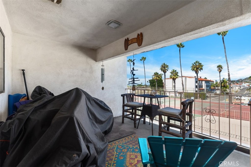 Coastal retreat in the resort living Ocean Fairways community, offering ocean, sunset, golf course, and city lights views. This charming and cozy one bedroom condo features an open-concept kitchen and living area designed for relaxed seaside living, complete with concrete countertops, stainless steel appliances, breakfast bar, recessed lighting, and a cozy gas fireplace. Enjoy ocean breezes and vibrant sunsets from both the living space and the private patio, perfectly positioned above the pool and tennis courts—an ideal setting for morning coffee or evening unwinding. The unit includes one assigned covered parking space with additional storage. Ocean Fairways delivers resort-style amenities, including an elevator, heated pool and spa, tennis courts, recreation and game room with kitchen and pool table, gated grounds, onsite management, and community laundry. Located adjacent to the San Clemente Municipal Golf Course and less than a mile from sandy beaches, world-class surf breaks, and the charm of Downtown San Clemente’s dining and shopping. Ideal for a first time home owner or investor.