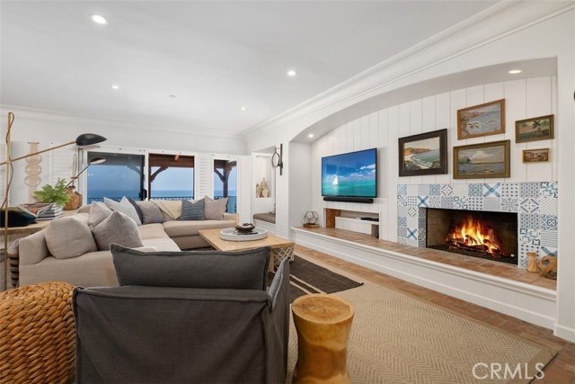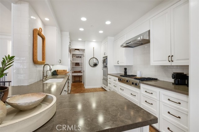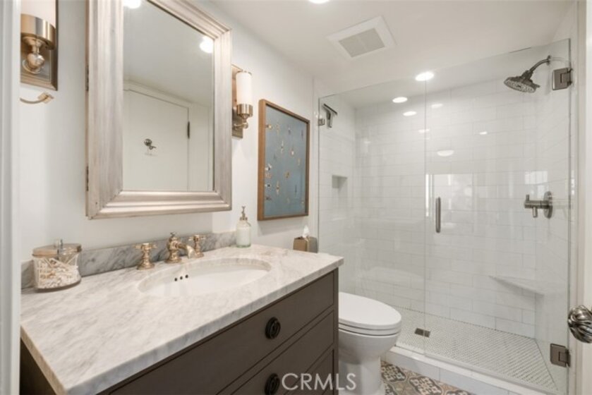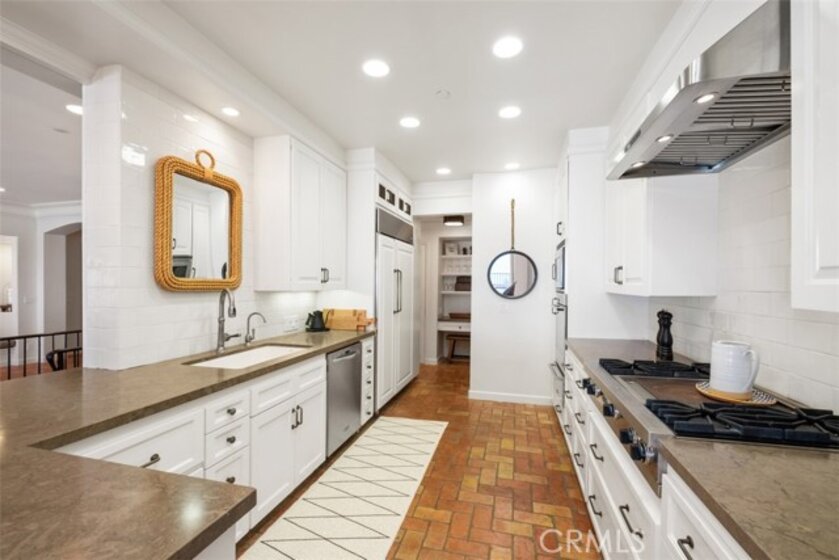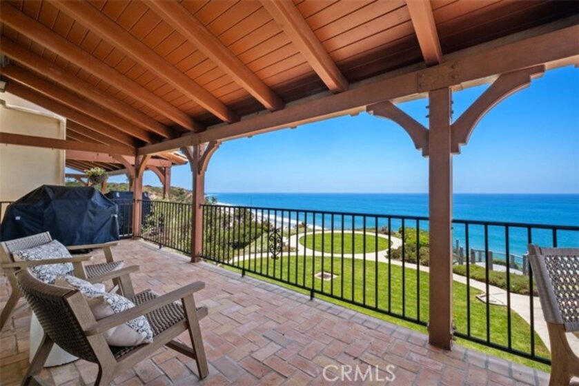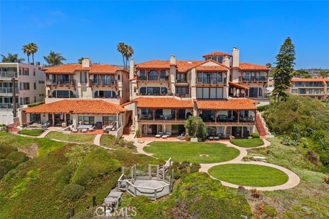 Located in the historic Casa de Marca landmark in Southwest San Clemente, this unparalleled gem is perched on a bluff, offering sweeping vistas of the coastline, Catalina, and San Clemente Islands from every room in the home. It is a front-row, two-level home that has been meticulously remodeled from top to bottom, ensuring a luxurious living experience. The home is well laid out and can comfortably host approximately 10 guests, making it perfect for entertaining. Upon entering, you are welcomed into the living area, which features expansive 180-degree views of the Pacific Ocean. The living area seamlessly flows into the dining space and spacious kitchen, which boasts new Sub Zero, Bosch and Viking appliances, limestone countertops, a farmhouse sink, and a beautiful custom backsplash. Additionally, your custom temperature controlled wine cellar is conveniently located in the butler’s pantry, providing ample storage options. Throughout the home, there is an abundance of storage, including a hidden, custom Murphy bed in the upstairs office for added flexibility. All three bathrooms have been fully renovated with custom tile and fixtures. The primary and guest bedrooms, located on the lower level, are exceptionally spacious. The primary suite features a large dressing area, dual sinks, a large walk-in closet, and a gorgeous walk-in shower. The lower level rooms open onto a large patio that leads to a lush ocean-view lawn area. The timeless Spanish style is evident throughout the home, with beautiful stone flooring and architectural arches. This home includes two secured underground parking spots and a storage area conveniently located next to the condominium entrance.