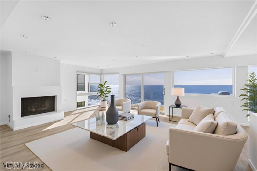 Set high above the Pacific on a dramatic oceanfront bluff, this exceptional retreat captures some of the best ocean views in all of San Clemente! Positioned on the upper level of an intimate six-residence building, the home delivers uninterrupted, sit-down panoramas stretching from Catalina Island to the iconic San Clemente Pier, with endless coastline and sunset skies. The residence extends farther toward the ocean than neighboring units, creating a sense of seclusion while maximizing the breathtaking scenery and soothing waves. Ideally located just steps away to Calafia State Beach access and Park. Inside, the interior is light, bright, and thoughtfully designed to keep the ocean as the focal point. The second bedroom was previously reconfigured to allow more space in the main living area. This floor plan offers flexibility, and the bedroom could easily be expanded back to its original size if desired. The spacious great room is anchored by a cozy fireplace and flows seamlessly into the dining area and beautiful kitchen, which all open to a gorgeous ocean view deck ideally equipped with a built-in BBQ. The primary suite features a remodeled bathroom, walk-in closet, and a built-in desk. A single-car carport with a private storage closet is included. A rare opportunity for a front row seat to incredible Pacific views! Effortless coastal living awaits!