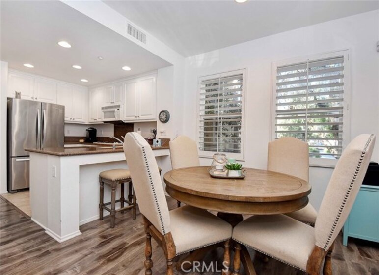 Charming 2 bed, 2.5 ba front unit in Alassio. Exterior unit offers privacy & greenery views. Enter & note the subtle clean tones of this home. New laminate wood floors in a rich gray tone through the family, breakfast nook, kitchen & powder room areas. Family Room is spacious an&d bright, all windows have Plantation shutters for added privacy. Breakfast Nook is open to Family room & Kitchen, large window ushers in natural light! Kitchen w/counter seating, granite counter's & backsplash. White Whirlpool appliances & Stainless refrigerator compliment the area, adjacent pantry is roomy. Downstairs guest bath w/pedestal sink is accessible for guests. 2-car tandem garage is attached to unit! Upstairs 2-bedrooms are placed on separate sides of the home for added privacy. Both rooms are spacious w/neutral carpeting & crisp paint. Master w/large walk-in roomy closet w/window, Master bath w/tile flooring, dual vanity & full tub/shower. White counters & cabinetry keep the area feeling bright. Upstairs laundry room w/cabinetry. Hall linen cabinet, recessed lights through the home, trees views from each room & mature landscaping surrounds the unit. Home is located near the community pool, spa & tot lot; hop on the bike/walking trail & head to Starbucks or grab a bite in the local dining areas. Talega offers 4-large pools for you to enjoy, parks, fields, excellent schools, great restaurants and services in the Talega Village. Come live & relax in this wonderful neighborhood!