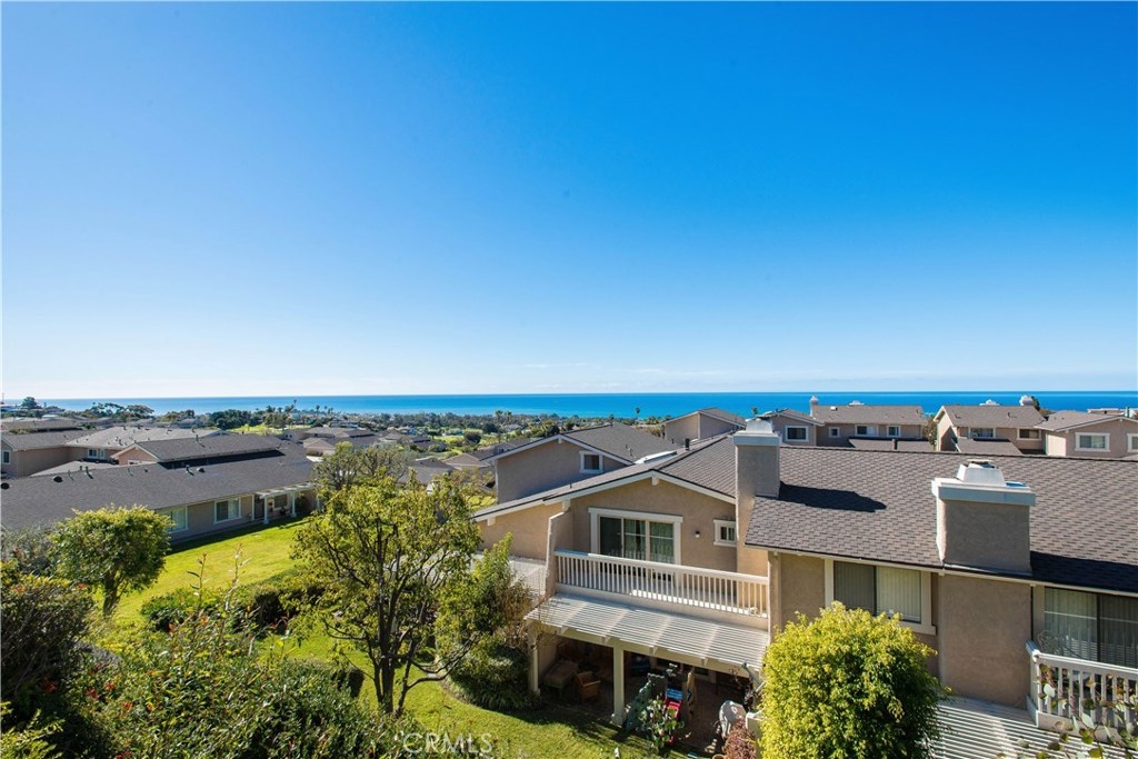 Stunning, panoramic ocean, Catalina and San Clemente Island VIEWS in the popular community of Presidential Heights II! The incredible sit-down ocean views from both levels are sure to impress! This 2 bedroom, 1.5 bath residence has also been spectacularly remodeled from top to bottom all throughout! Light and bright open floorplan with new, beautiful bamboo hardwood flooring. The updated kitchen is all new, functional and exquisitely equipped with granite counters, stainless steel appliances, and chic cabinetry. Both bedrooms are found on the upper level. The master bedroom showcases sparkling and unobstructed ocean views, a walk-in closet, a completely updated master bath, vaulted ceilings and balcony. Sunsets enjoyed from the balcony are absolutely sensational! Additional highlights include new industrial lighting fixtures, new interior paint, new windows, new sliders, new ceiling fans in both bedrooms, new baseboards, a new furnace and more! Ample outdoor space to relax and unwind with a large outdoor patio with ocean views and a front enclosed courtyard. Soak up the sun in one of the multiple community pools and spas, enjoy the convenience of easy guest parking and relish in the beauty of the maintained greenbelts and landscaping. This popular community is in a wonderful location sitting just above the San Clemente Municipal Golf Course and only minutes to world class surfing and beaches, easy freeway access, shopping and dining!
