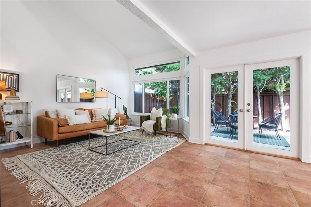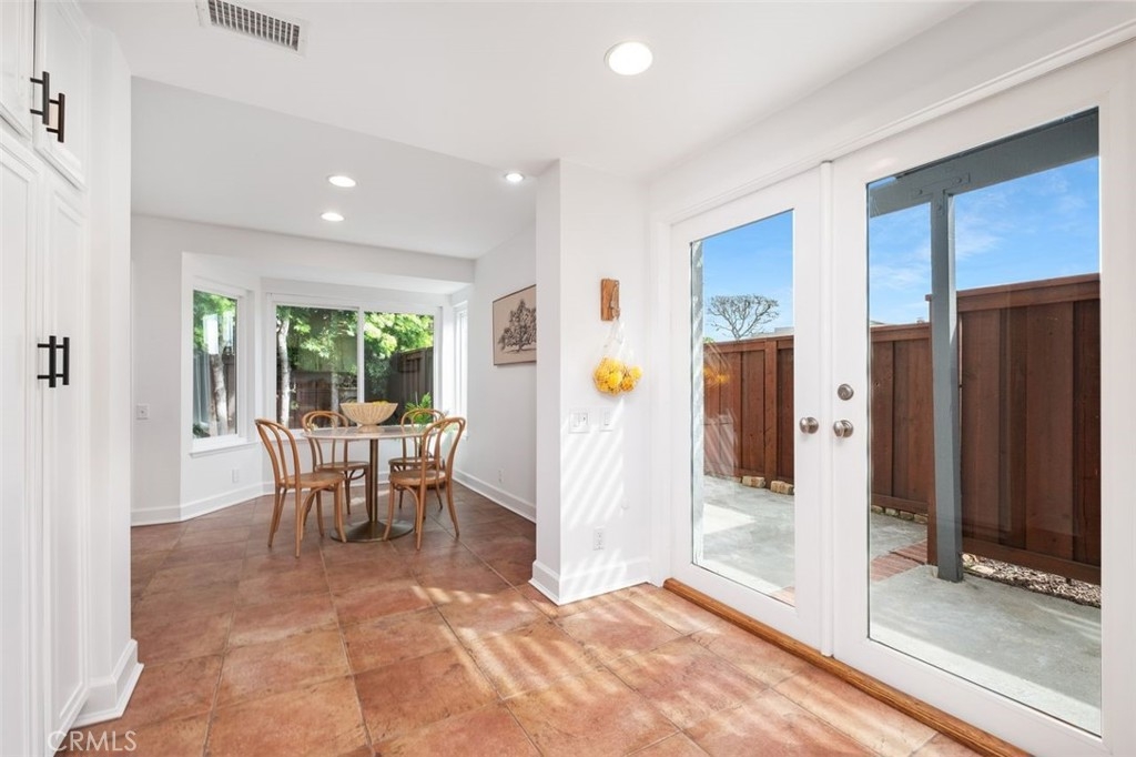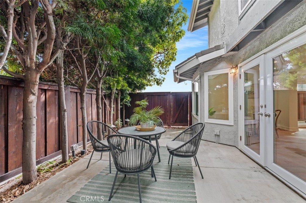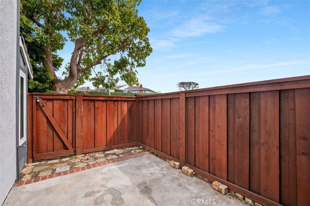 Beach-Close Bliss! Nestled in a prime end-of-cul-de-sac location, this 3-bed, 2.25-bath end unit gem offers the perfect blend of privacy and coastal charm! From the moment you step through the oversized double front doors onto timeless terracotta pavers, you’ll feel the warmth of natural light dancing off freshly painted white walls, creating an open and airy vibe. Main floor living? You got it! A spacious bedroom with a private entrance and remodeled bath makes hosting guests or multi-generational living a breeze. The expansive cathedral-ceiling living room flows effortlessly into the dining area, where beautifully cased windows frame the space over looking your backyard patio that runs the length of the home. This private oasis, surrounded by mature trees and soft evening lighting, is your ultimate retreat—complete with gated access for both seclusion and convenience.  Back inside, the updated kitchen offers abundant storage, sleek stainless steel appliances, and direct access to a second outdoor patio space —ideal for everything from bbqing to dining al fresco to nurturing a raised garden in the beautiful California sunshine. Ascend your floating stairs onto brand-new luxury vinyl floors into a dreamy peek-a-boo ocean view primary suite with soaring ceilings, windows showcasing serene backyard views and a large walk-in closet. The en-suite bath features an upgraded shower/tub combo and a spacious vanity. A third bedroom, extra storage, and a ¼ bath complete the second level. Additional perks? A/C for those rare extra-warm days, recessed lighting, ceiling fans, a water softener, a water filtration system, an oversized 2-car garage with washer and dryer & tons of storage and workspace. The resort-style community pool and spa and park like grounds with lush greenery and winding paths to private play area are just the cherry on top! Close to world-famous beaches, award-winning schools, top-tier dining, and incredible shopping, this is the ultimate in casual coastal lifestyle. Love where you live - this is the one!