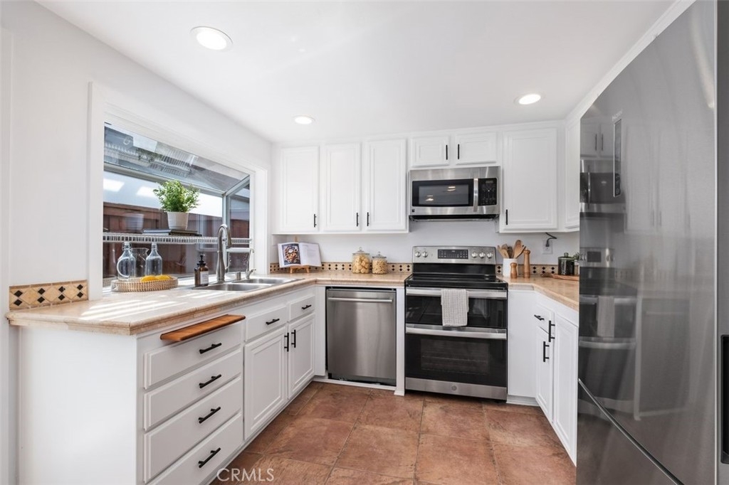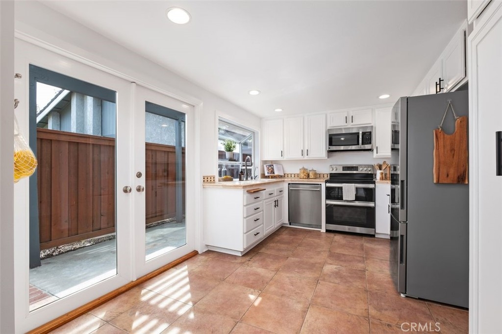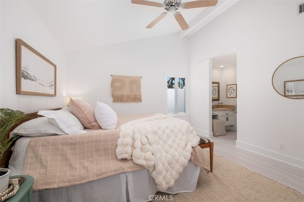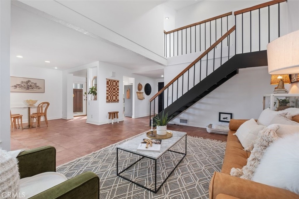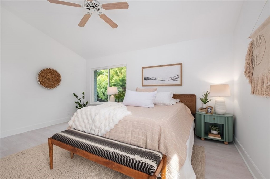 Beach-Close Bliss! Nestled in a prime end-of-cul-de-sac location, this 3-bed, 2.25-bath end unit gem offers the perfect blend of privacy and coastal charm! From the moment you step through the oversized double front doors onto timeless terracotta pavers, you’ll feel the warmth of natural light dancing off freshly painted white walls, creating an open and airy vibe. Main floor living? You got it! A spacious bedroom with a private entrance and remodeled bath makes hosting guests or multi-generational living a breeze. The expansive cathedral-ceiling living room flows effortlessly into the dining area, where beautifully cased windows frame the space over looking your backyard patio that runs the length of the home. This private oasis, surrounded by mature trees and soft evening lighting, is your ultimate retreat—complete with gated access for both seclusion and convenience.  Back inside, the updated kitchen offers abundant storage, sleek stainless steel appliances, and direct access to a second outdoor patio space —ideal for everything from bbqing to dining al fresco to nurturing a raised garden in the beautiful California sunshine. Ascend your floating stairs onto brand-new luxury vinyl floors into a dreamy peek-a-boo ocean view primary suite with soaring ceilings, windows showcasing serene backyard views and a large walk-in closet. The en-suite bath features an upgraded shower/tub combo and a spacious vanity. A third bedroom, extra storage, and a ¼ bath complete the second level. Additional perks? A/C for those rare extra-warm days, recessed lighting, ceiling fans, a water softener, a water filtration system, an oversized 2-car garage with washer and dryer & tons of storage and workspace. The resort-style community pool and spa and park like grounds with lush greenery and winding paths to private play area are just the cherry on top! Close to world-famous beaches, award-winning schools, top-tier dining, and incredible shopping, this is the ultimate in casual coastal lifestyle. Love where you live - this is the one!