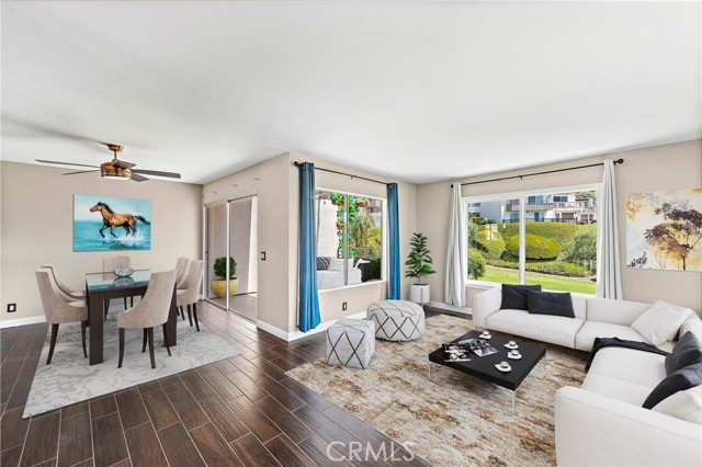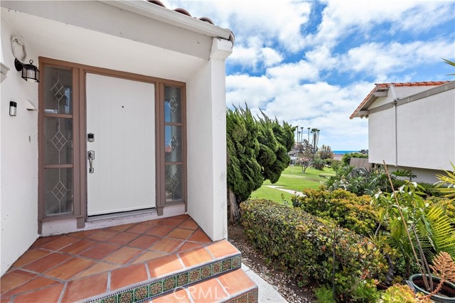 Pristine Turnkey home in the coveted Ocean Hills! A relaxing community with panoramic ocean, hills and city light views! A perfectly situated location, this corner unit has a wonderful coastal feel and a spacious open floorplan illuminated with an abundance of natural light and 2 spacious outdoor living areas. With approximately 1,517 sqft of living space, the kitchen and bathrooms have been remodeled, porcelain tile flooring throughout, new roof/windows/furnace/plugs/switches and the home has recently been painted. The Upper level consist of the kitchen, guest bathroom, dining and living area with a sliding glass door opening to a balcony overlooking the greens and fabulous views. The Master bedroom is complemented with a walk-in closet and opens up to a private patio that is perfect for relaxing. The secondary bedroom also makes for a great home office, gym or guest room. Both the upper balcony and lower patio are spacious in size offering scenic views and are wonderful spaces to gather with friends and family! This is also the only home on Calle Casino with a 2 car garage and large driveway to accommodate 4 cars total. Having a great location within walking distance to one of the two community pools along with being situated right on the community pitch-n-putt golf course this is a premier location within the community. Close to beaches, Dana Point Harbor, Restaurants, Shopping, the home offers a serene coastal setting idyllic for Southern California living…and perhaps you!
