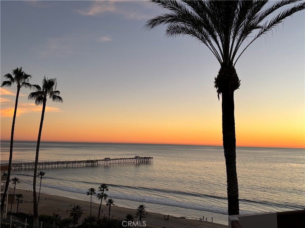 Experience refined oceanfront living in this exquisitely remodeled, single-level luxury condo located in the highly sought-after Vista Pacifica Villas, just steps from the iconic San Clemente Pier. Designed for comfort, style, and effortless coastal living, this stunning one-bedroom, two-bath residence showcases breathtaking ocean views and timeless finishes throughout. The just-completed remodel features tasteful luxury vinyl plank flooring, white shaker-style kitchen cabinetry, elegant quartz countertops, a striking tile backsplash, oversized baseboards, and modern ceiling fans. The light-filled, open-concept floor plan creates a seamless flow, enhanced by expansive windows and doors that capture the coastal sunshine and soothing ocean breezes. The serene primary suite is a private coastal retreat, offering generous space, and French doors that open to a covered ocean-view balcony, creating an indoor-outdoor connection. The suite is complemented by an en-suite bathroom, providing comfort and privacy—perfect for unwinding to the sound of the waves. Enjoy a spacious breakfast bar, a convenient interior laundry/utility room, and two expansive ocean-view balconies—perfect for watching waves roll in, white water sparkle, vibrant sunsets glow, and fireworks light up the night sky. Additional highlights include two designated parking spaces, a private electric vehicle charging station, ample guest parking, and air conditioning—a rare coastal luxury. The prestigious gated community offers secured entry, two elevators, and a solid construction built on bedrock, providing peace of mind and enduring quality. Ideally located within walking distance to the beach, pier, world-class surf, downtown boutiques, acclaimed restaurants, wine bars, farmers market, ocean festivals, and Linda Lane Park, this home delivers the ultimate Southern California lifestyle. Offering 1,117 square feet of sophisticated coastal living in what is often considered the most moderate climate in the country, this exceptional residence embodies Coastal Luxury Living at its finest.