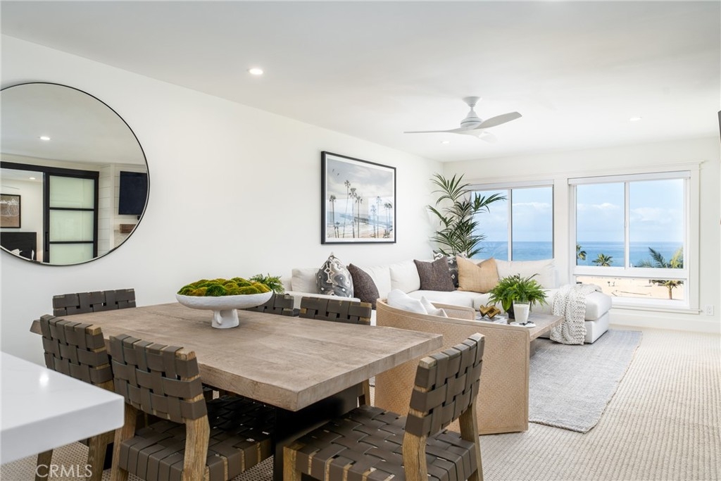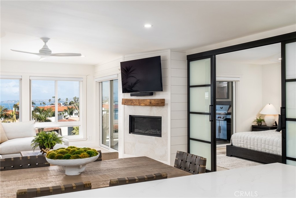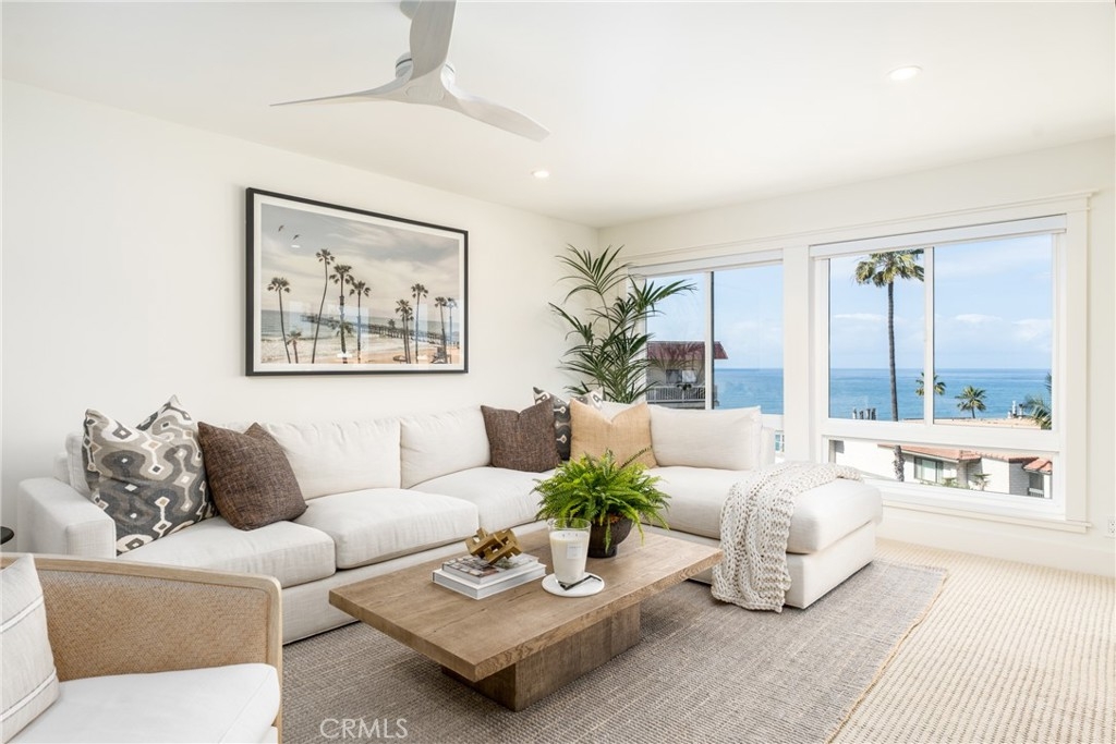 This beautifully remodeled luxury home offers breathtaking white-water views extending to the Dana Point Headlands. The open floor plan, complete with designer finishes, seamlessly blends style and comfort. The spacious primary suite boasts dramatic ocean views, while two additional bedrooms and three coastal-inspired bathrooms provide comfortable space for guests. A gas fireplace with shiplap adds warmth and ambiance on cooler evenings. Enjoy resort-style living with stunning Pacific sunsets and exclusive private beach access to San Clemente Beach. A short walk takes you to the iconic pier, Fisherman's Restaurant, and the charming downtown area, known for its boutique shops and dining. Located in the gated Reefgate West community, residents enjoy top-tier amenities, including a pool, spa, sauna, rooftop sundeck, gym, recreation room, meeting spaces, and a banquet hall. Elevators provide easy access to the third floor, and two gated parking spaces add convenience. Short-term rentals (30+ days) are welcome.