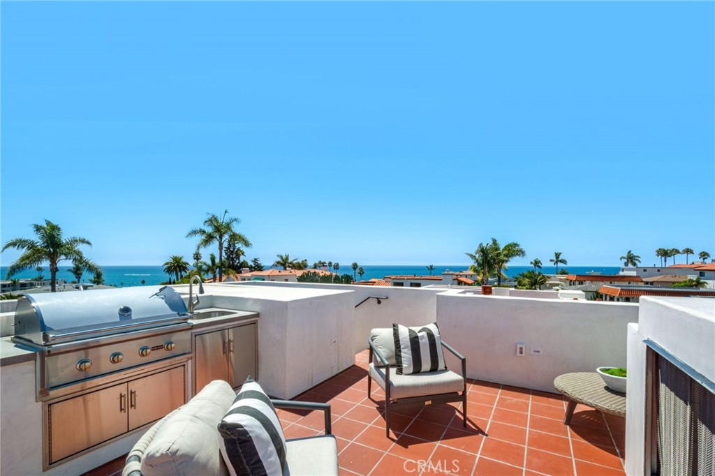 Experience elevated coastal living in the heart of San Clemente’s coveted Pier Bowl. Designed by renowned local architect Michael Luna, this brand-new luxury townhome pairs ocean and village views with refined modern design, a private elevator, solar power, and a rooftop deck crafted for entertaining. The ground level features a spacious two-car garage, welcoming entry, laundry room, and bathroom. Upstairs, the main level is designed for gatherings, with a fireplace-warmed living room, expansive windows, and accordion glass doors that open to a view deck. A dedicated dining area connects seamlessly to the chef’s kitchen—appointed with abundant white cabinetry, quartzite countertops, a dry bar with wine fridge, a large island with bar seating, and top-tier Wolf and Sub-Zero appliances—while a private office and adjacent bathroom add flexible functionality. On the upper level, two secondary bedrooms share a sleek full bath, while the primary suite impresses with a private view deck, generous walk-in closet, and spa-inspired bath with dual vanities and a large walk-in shower. Crowning the residence, a rooftop deck captures panoramic coastal views and is appointed with a fireplace, outdoor kitchenette with BBQ, and prep sink—perfect for entertaining under the stars. With approximately 2,679 square feet of thoughtfully designed living space, this modern home delivers the ultimate blend of luxury, sustainability, and convenience—just moments from the sand, San Clemente Pier, and the vibrant shops and dining along Avenida Del Mar.