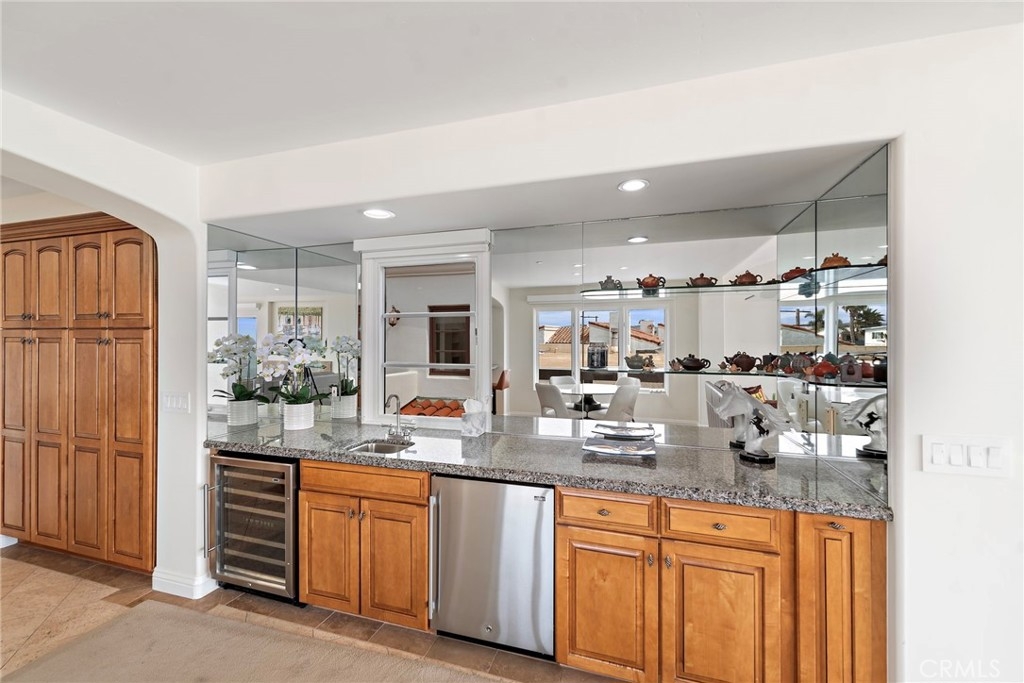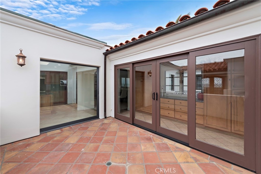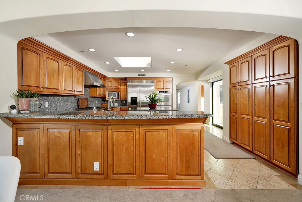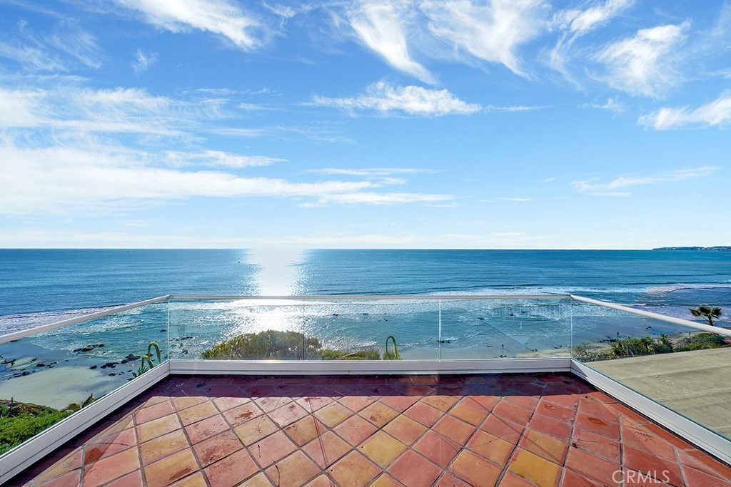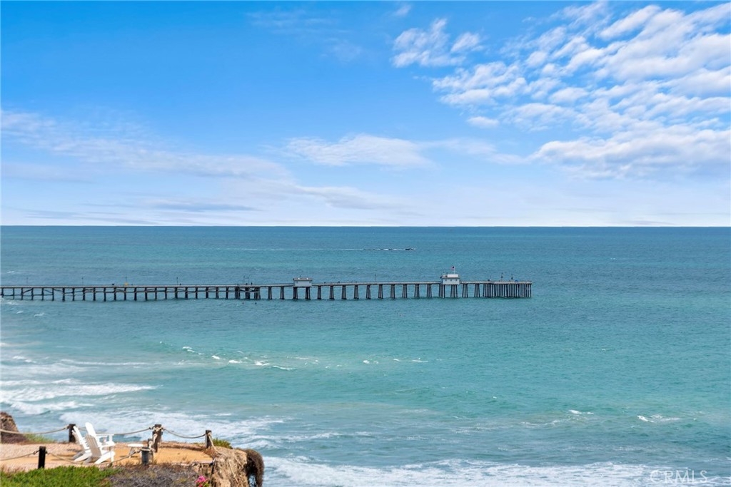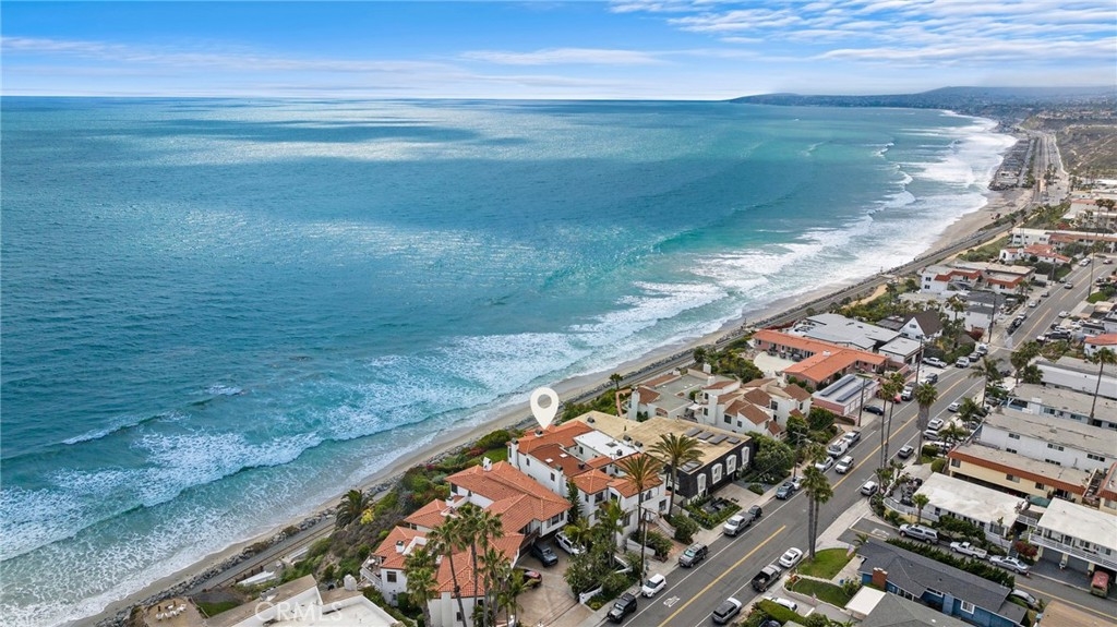 Positioned atop a secluded bluff overlooking the Pacific, this oceanfront penthouse in San Clemente presents a rare opportunity to experience coastal living with both privacy and architectural distinction. One of only three residences in an intimate building, the home captures sweeping views of whitewater, city lights, and the iconic San Clemente Pier from its elevated vantage point. Spanning approximately 3,287 square feet on a single level, the interior is accessible by private elevator or a spiral stair rising from the courtyard. The layout is open and intentional, with the kitchen, dining area, and living room unfolding toward a full-width oceanfront terrace. Floor-to-ceiling glass invites natural light and frames uninterrupted coastal views, while a terrace fireplace creates a focal point for morning coffee or evening gatherings. The kitchen is both functional and expressive, anchored by a central island and detailed with granite countertops, a skylight, and walk-in pantry. A suite of KitchenAid appliances, including a built-in refrigerator, blends utility with understated design. Adjacent to the kitchen, a dedicated wet bar with wine refrigeration supports seamless entertaining. The dining space is defined by custom cabinetry and a second fireplace, offering warmth and cohesion to the open plan. The primary suite is oriented toward the ocean, with sliding doors that open to the terrace. A custom walk-in closet, spa-like bath with jetted soaking tub, walk-in shower, and overhead skylights contribute to a quiet, restorative atmosphere. Two secondary bedrooms share a sophisticated Hollywood-style bathroom, while a spacious media room with vaulted ceilings, a corner fireplace, and private balcony offers added flexibility for hosting or retreat. Additional features include secure subterranean parking for four vehicles and a location just moments from downtown San Clemente’s shops, cafés, coastal paths, and beaches. This luxury penthouse is a rare expression of refined coastal living in one of Southern California’s most sought-after enclaves.